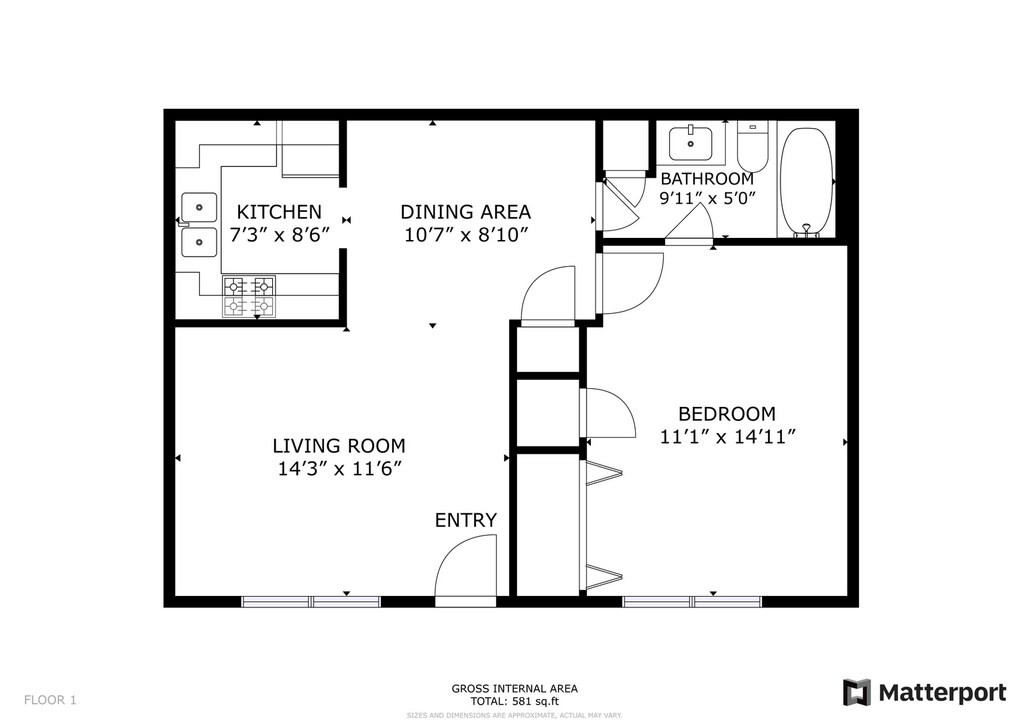 1 Dormitorio, 1 Baño, 515 pies²Disponible AhoraGalería del Modelo