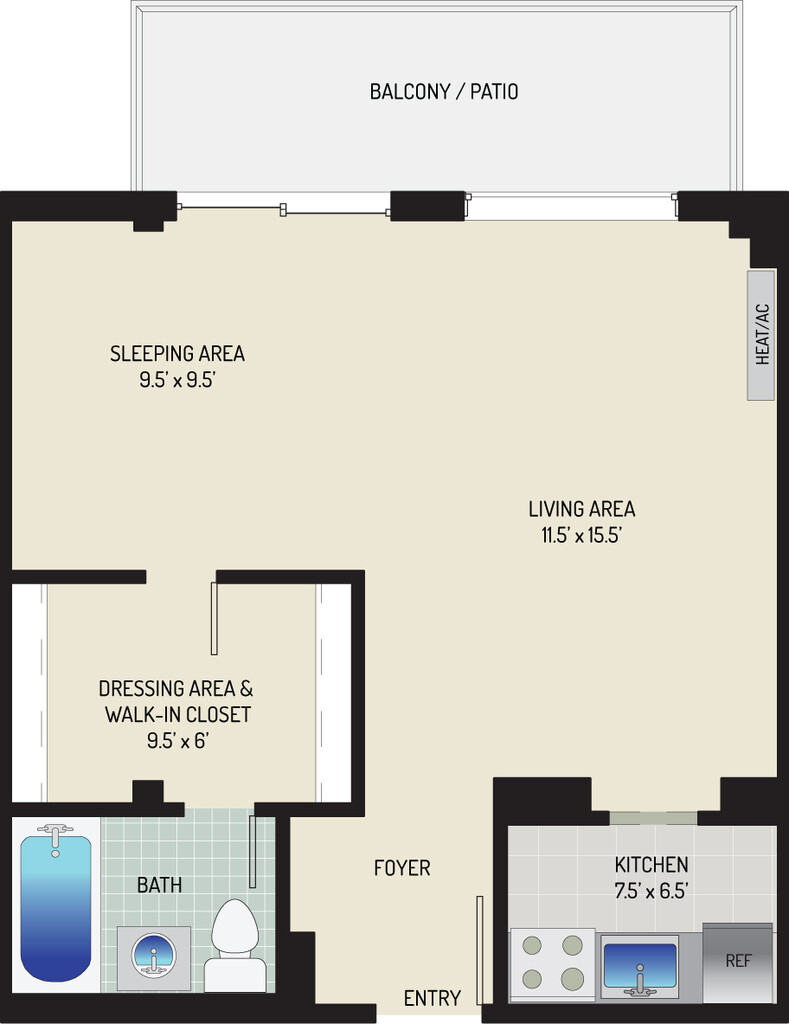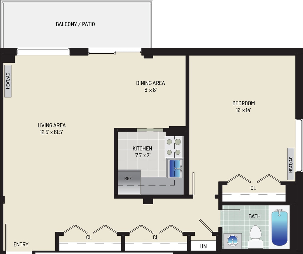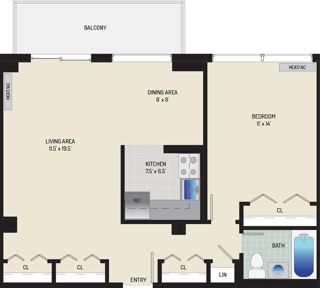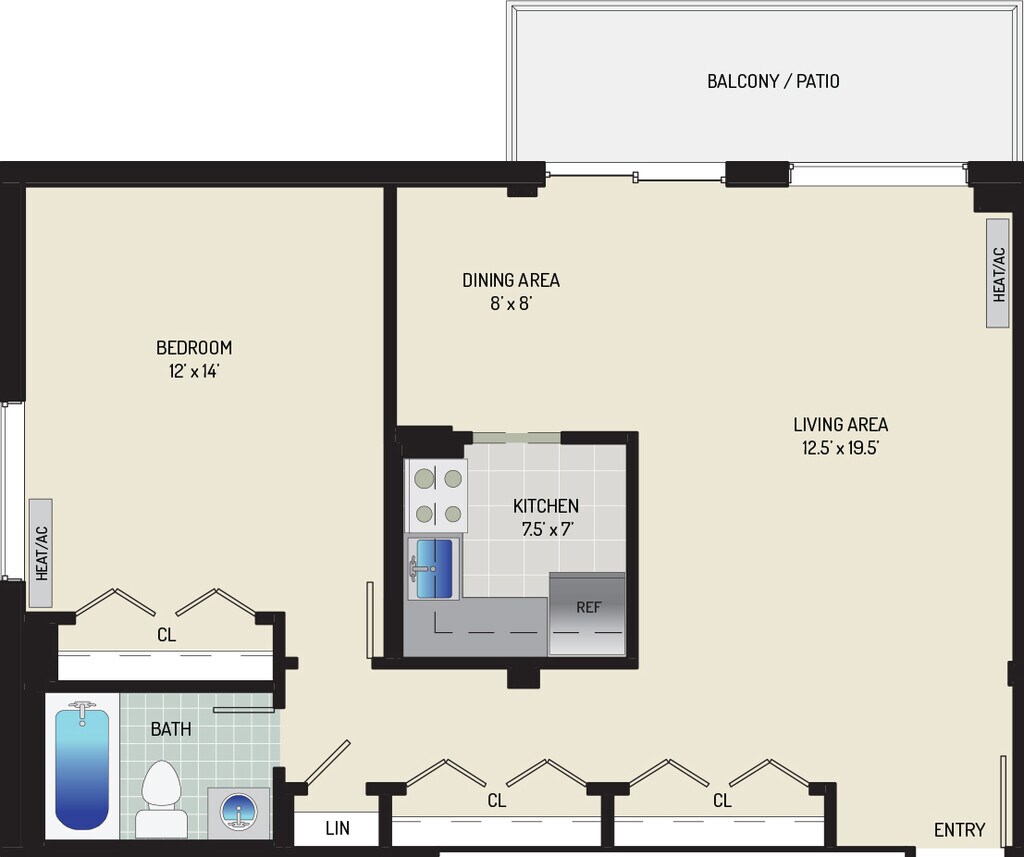 1 Bedroom, 1 Bath - Plano 7 ![]()