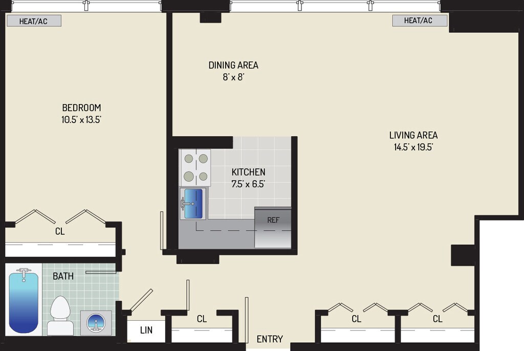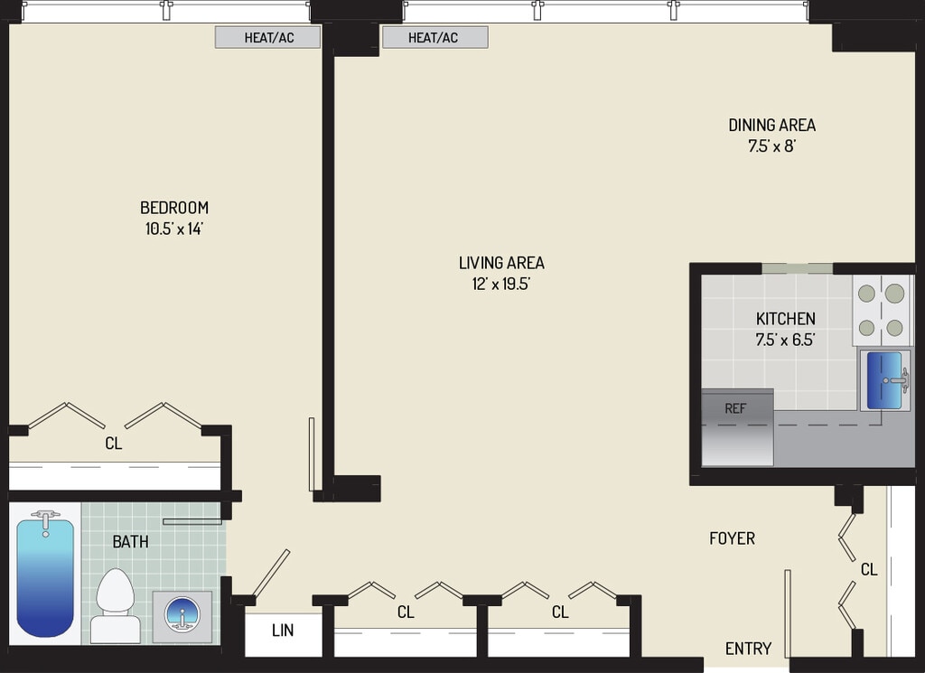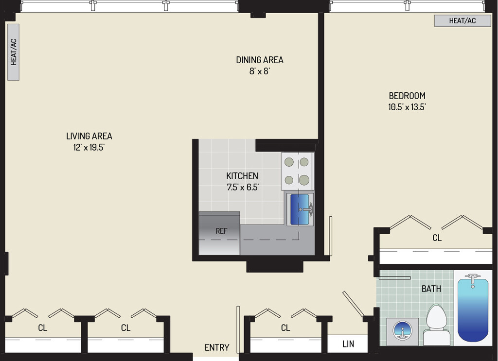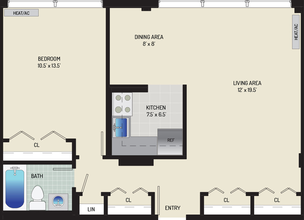 1 Bedroom, 1 Bath - Plano 7 ![]()