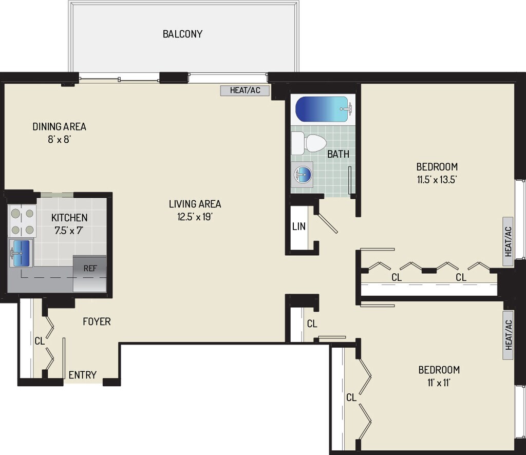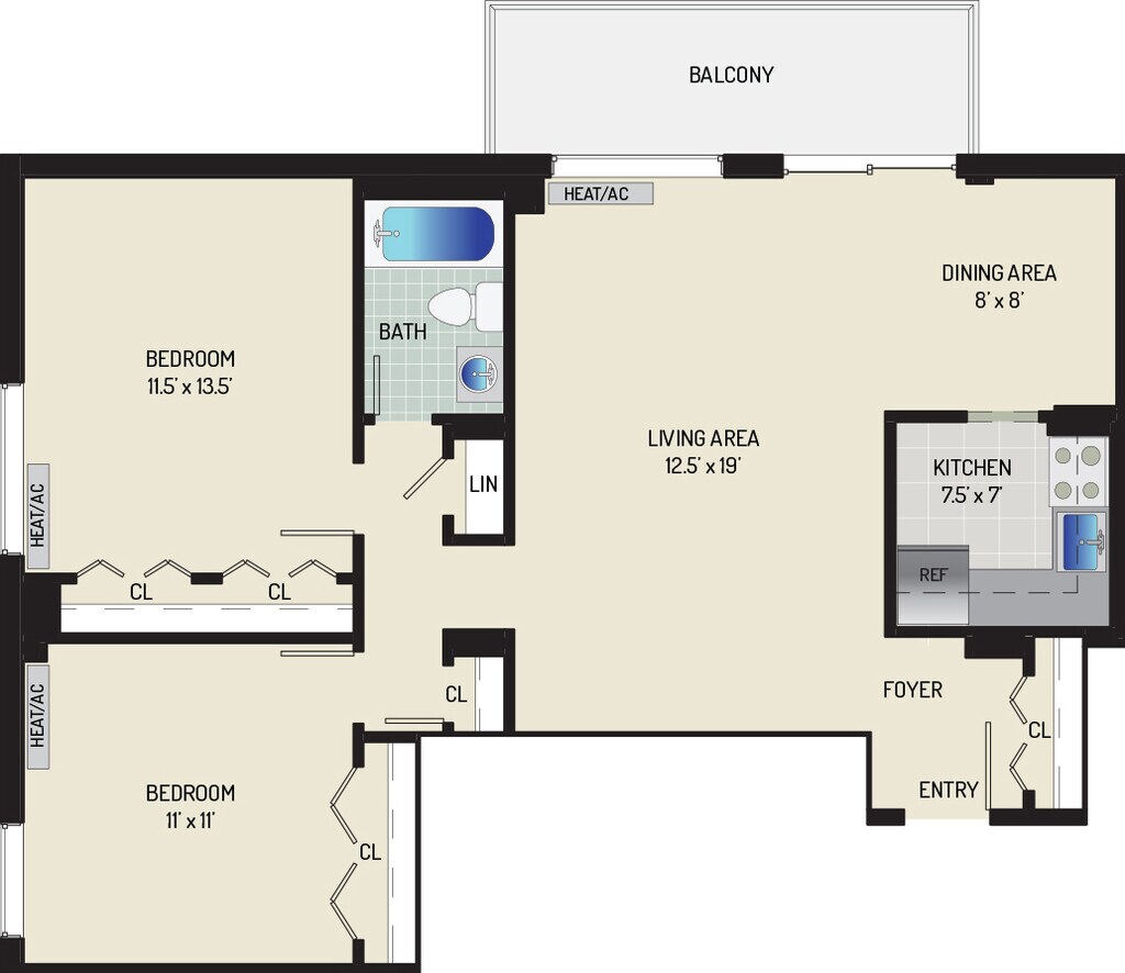 1 Bedroom, 1 Bath - Plano 8 ![]()