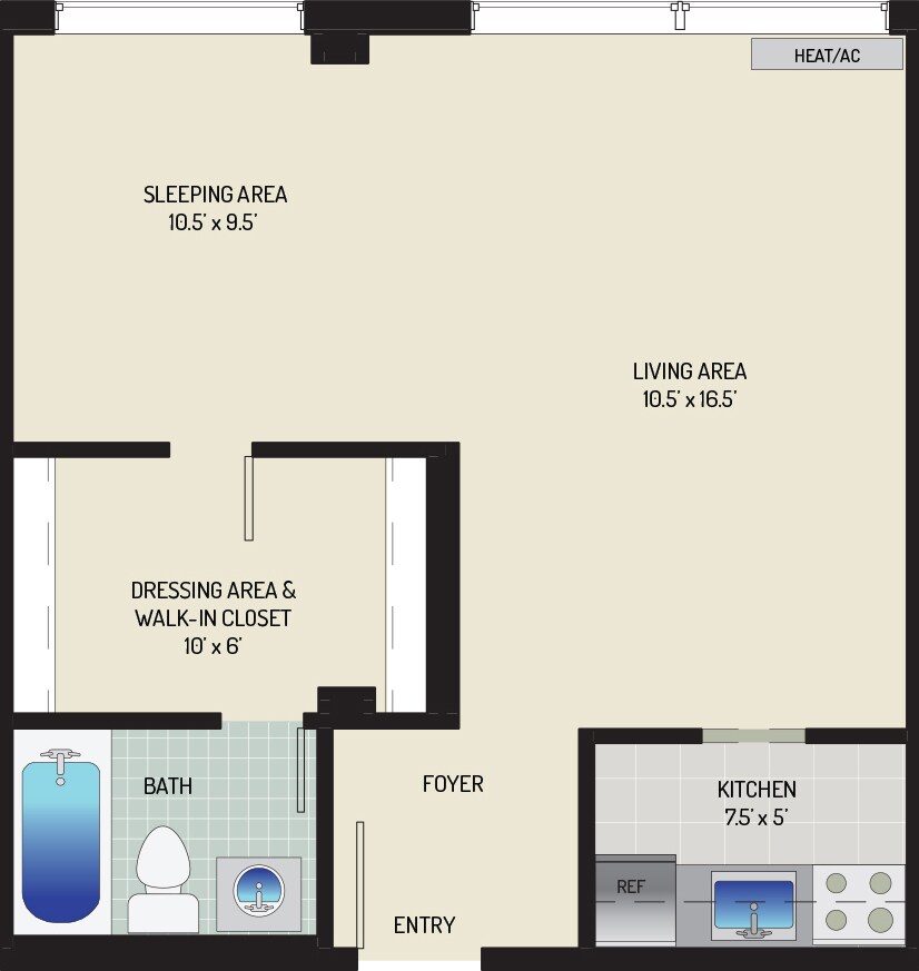Estudio, 1 Baño, 465 pies²Disponible January 14, 2026Galería del Modelo