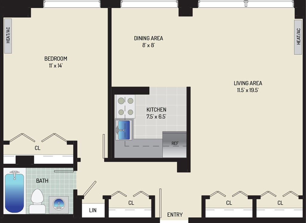 1 Bedroom, 1 Bath - Plano 5 ![]()