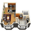 Modelo de apartamento: Residence 4Desde $3,7181 Dormitorio, 1 Baño, 486 sq ftDisponible Ahora![]()