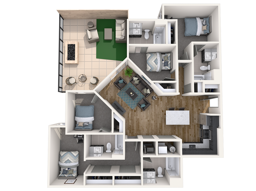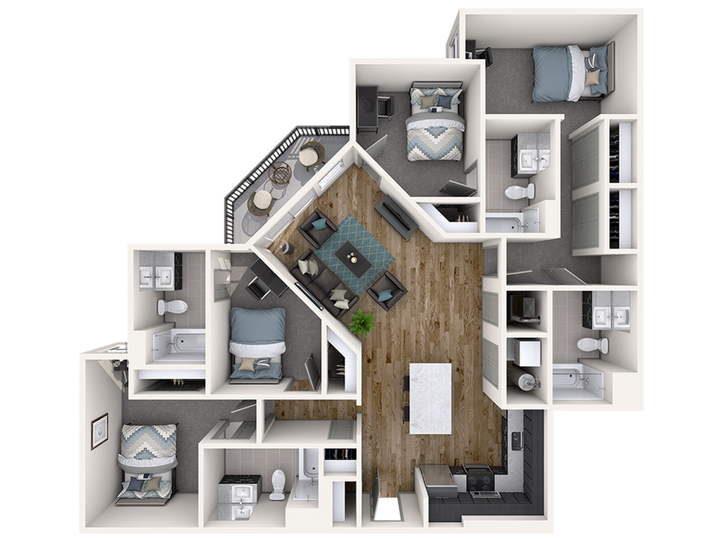 - Balcones amplios con vista a la ciudad de Houston, el campus o el área de la piscina