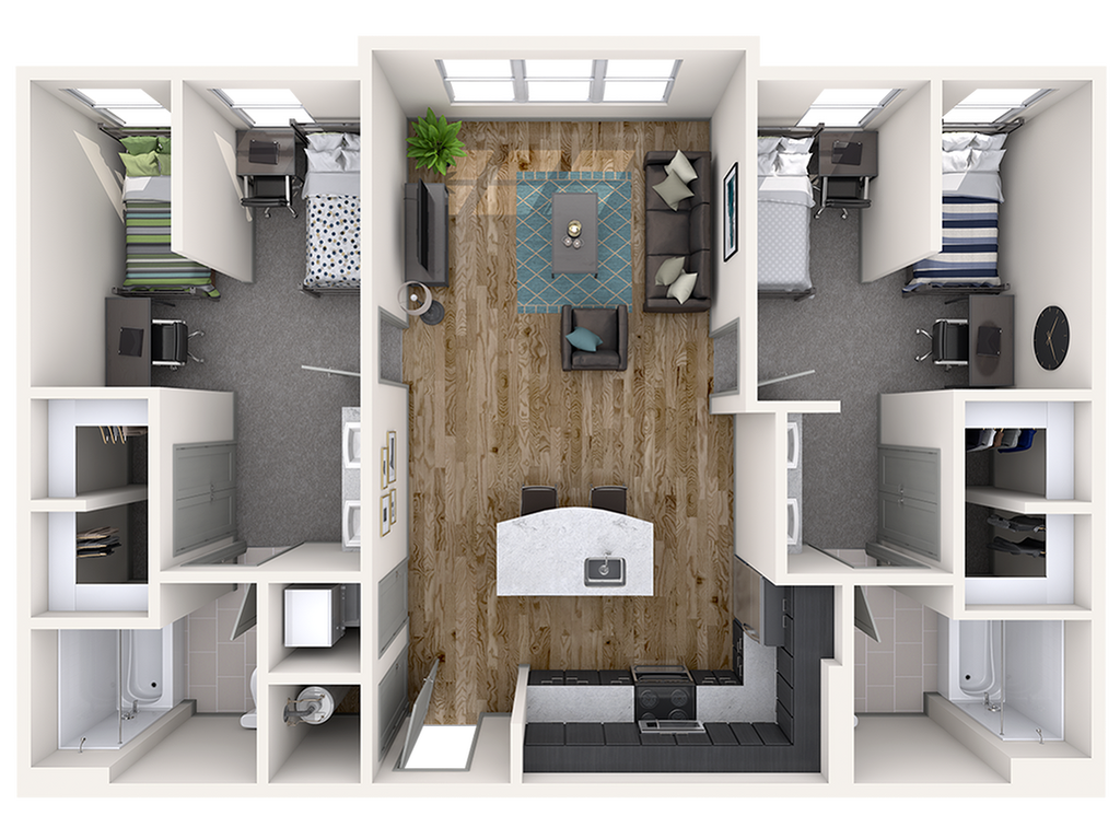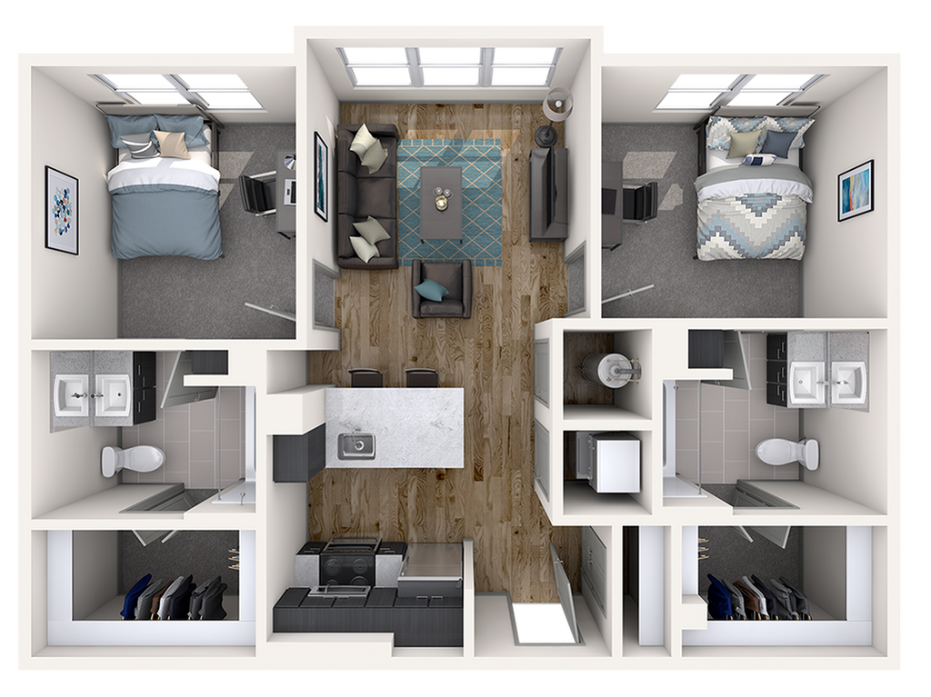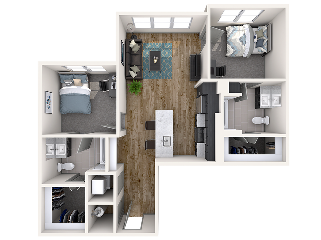 2 Dormitorios, 2 Baños, 1066 pies²El más grandeEsta opción tiene las unidades más grandes para este modeloGalería del Modelo