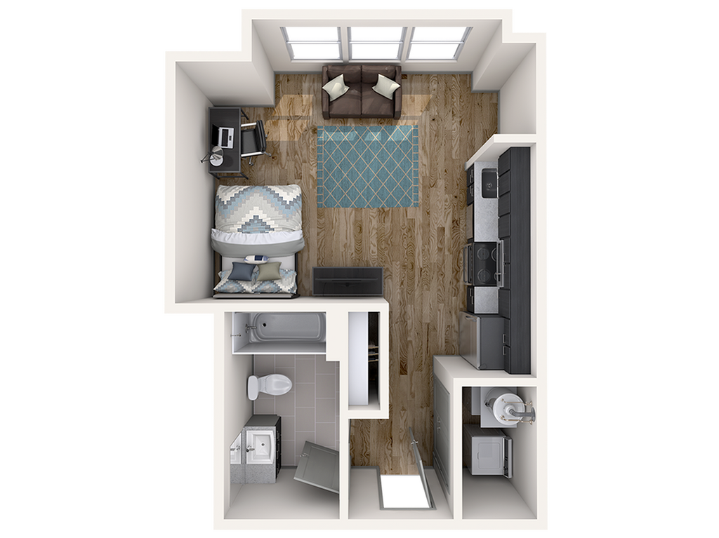 Modelo de apartamento: S3Estudio, 1 Baño, 387 sq ftNo Disponible![]()