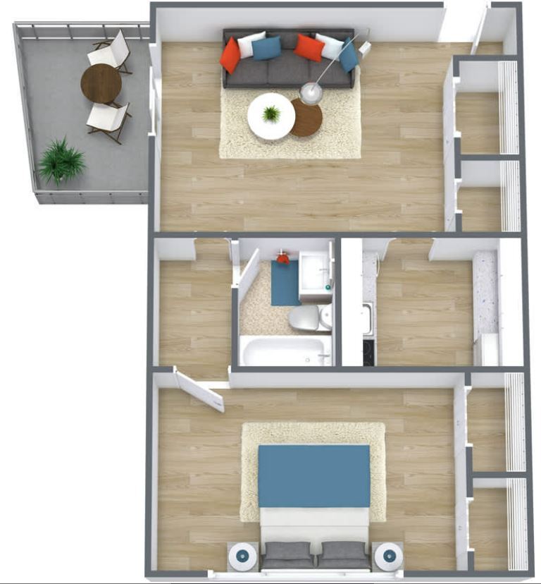 Estudio, 1 Baño, 480 pies²Disponible February 3, 2026El más grandeEsta opción tiene las unidades más grandes para este modeloGalería del Modelo