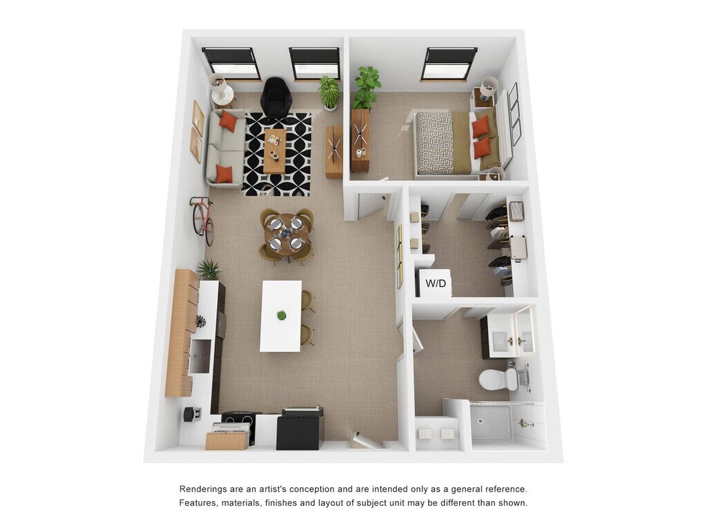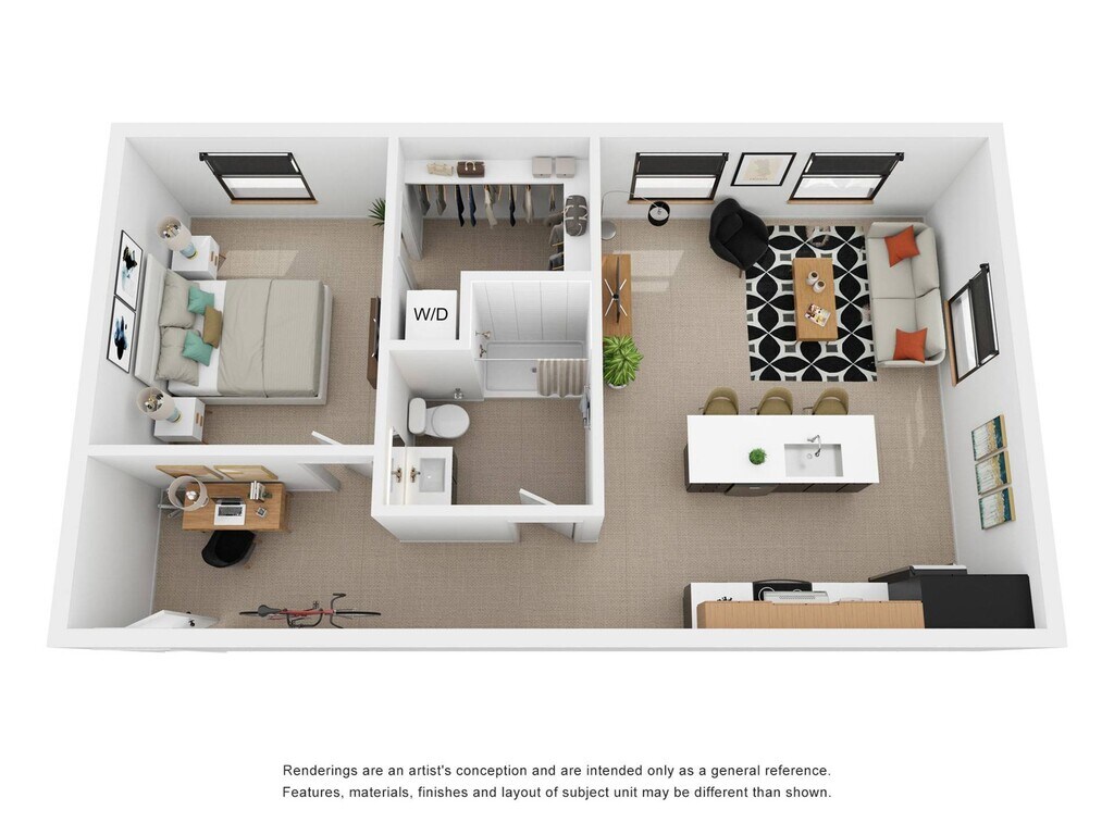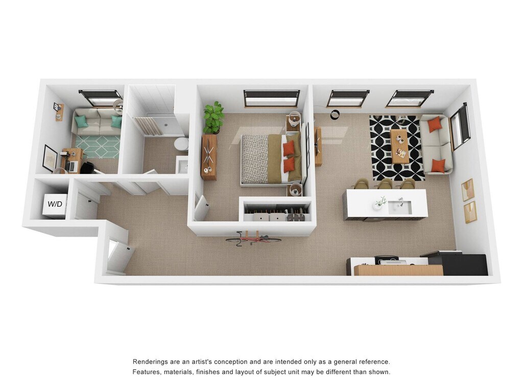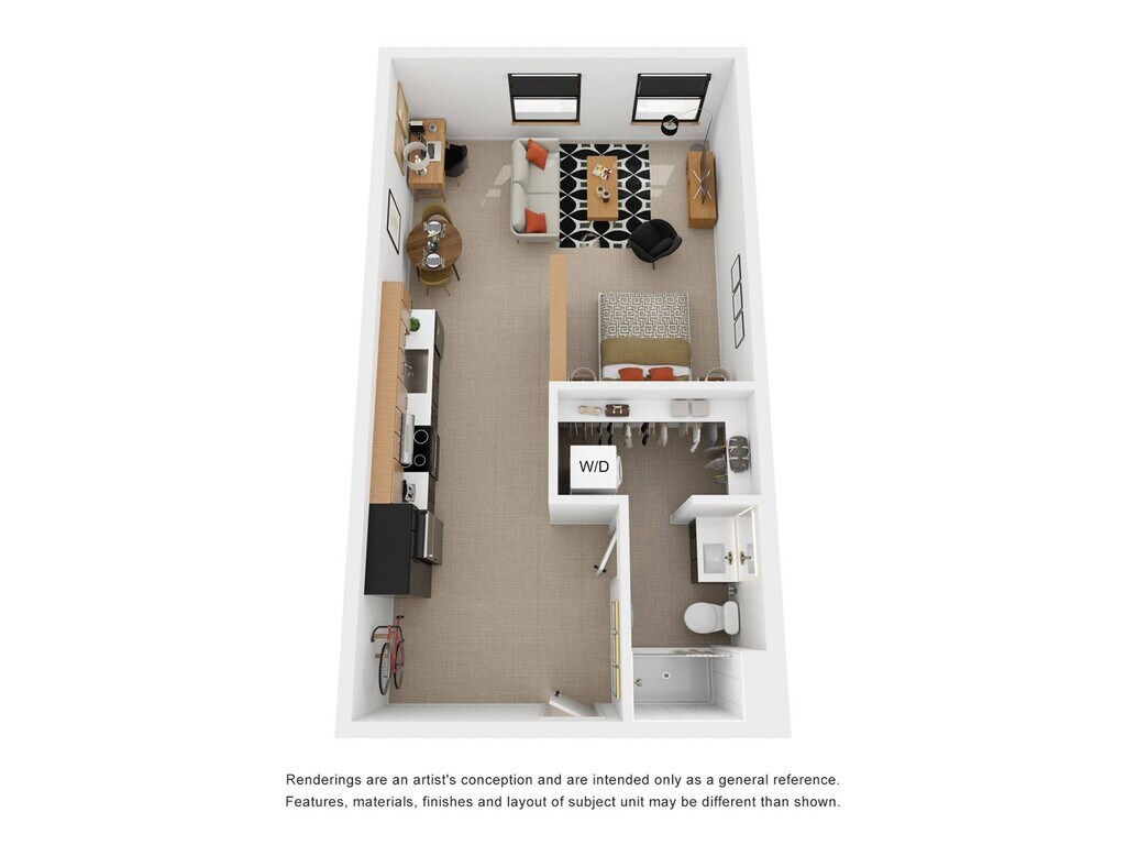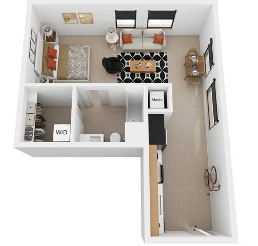 Estudio, 1 Baño, 666 pies²Disponible AhoraEl más grandeEsta opción tiene las unidades más grandes para este modeloGalería del Modelo