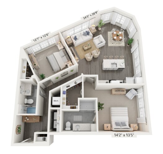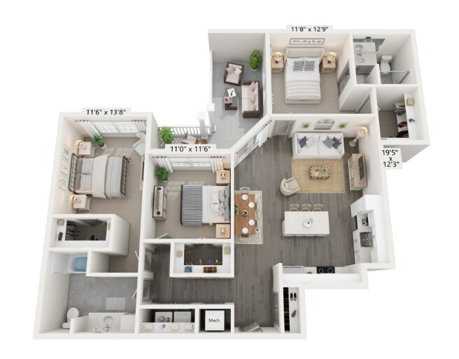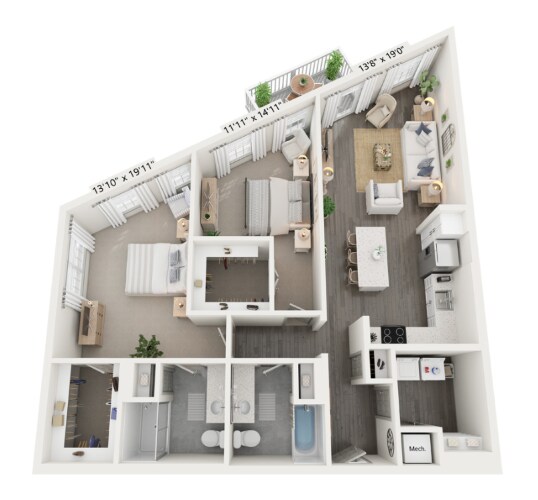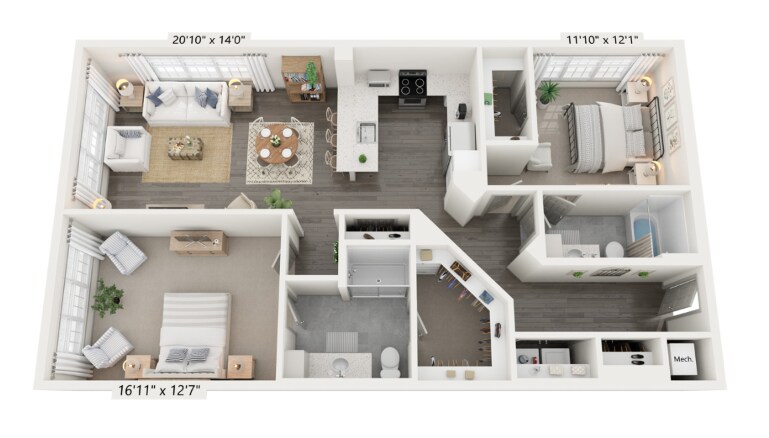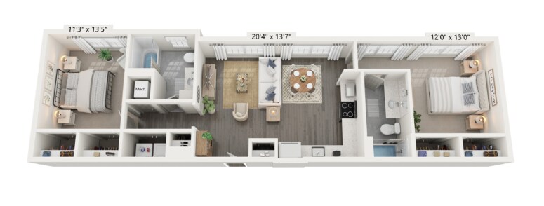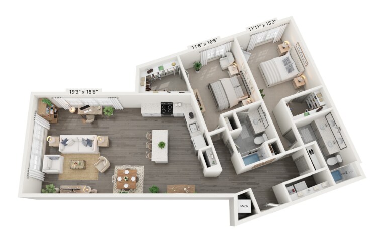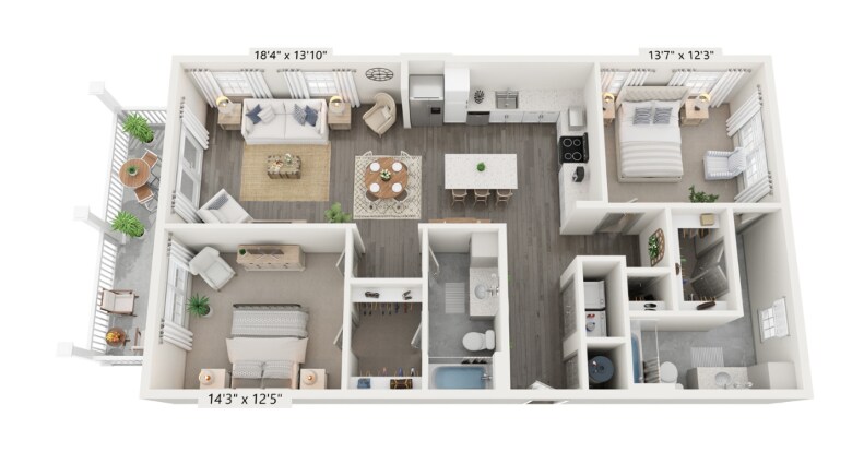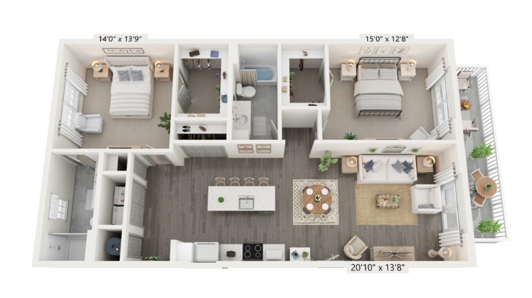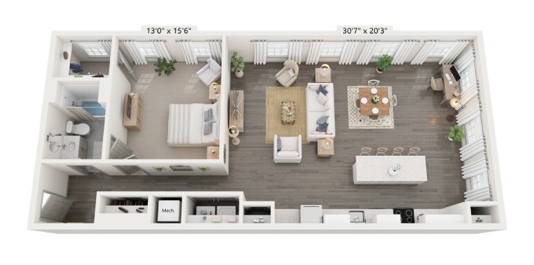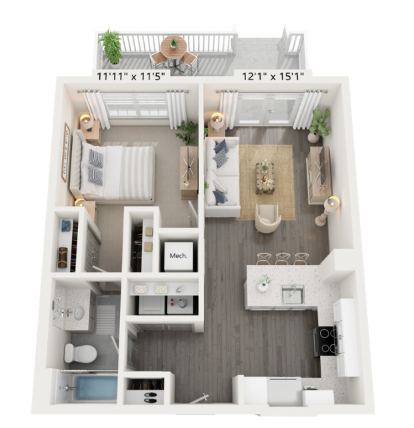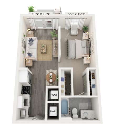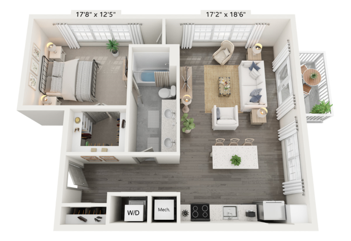 1 Dormitorio, 1 Baño, 750 pies²Disponible AhoraGalería del Modelo