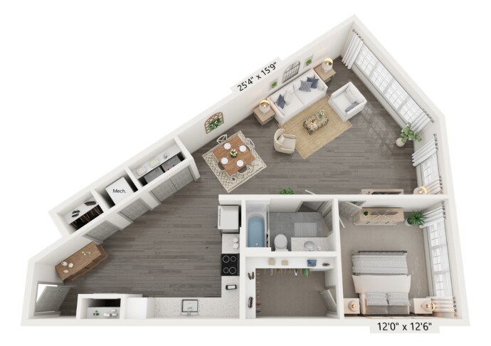 1 Dormitorio, 1 Baño, 700 pies²Disponible AhoraGalería del Modelo