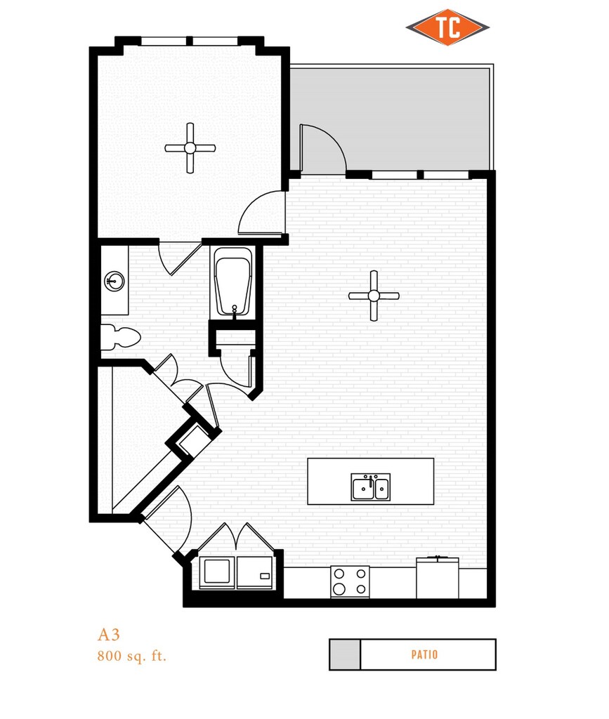 Modelo de apartamento: A3Desde $1,4841 Dormitorio, 1 Baño, 800 sq ftDisponible Ahora![]()