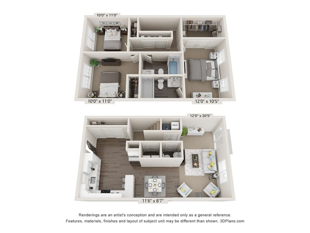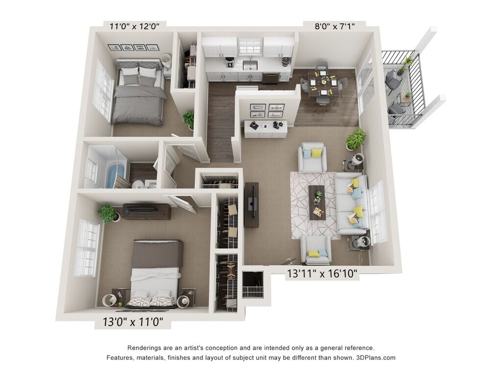 2 Dormitorios, 2 Baños, 942 pies²Disponible AhoraGalería del Modelo