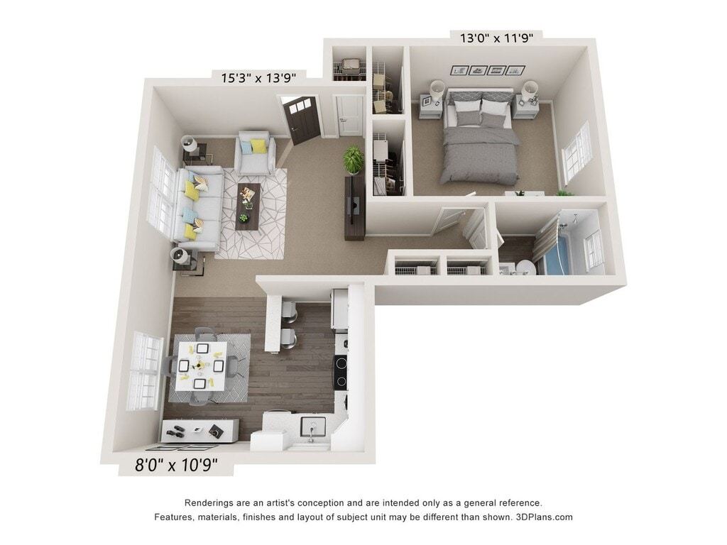 Modelo de apartamento: 1 Bedroom 1 Bath with Nook – 633Desde $1,0821 Dormitorio, 1 Baño, 633 sq ftDisponible Ahora![]()