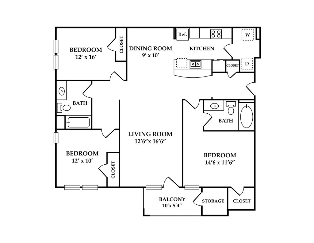 Modelo de apartamento: 1bDesde $1,4371 Dormitorio, 1 Baño, 857 sq ftDisponible Ahora![]()