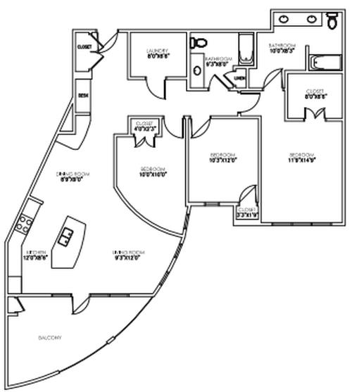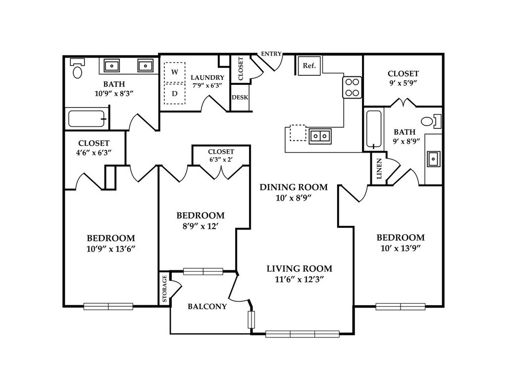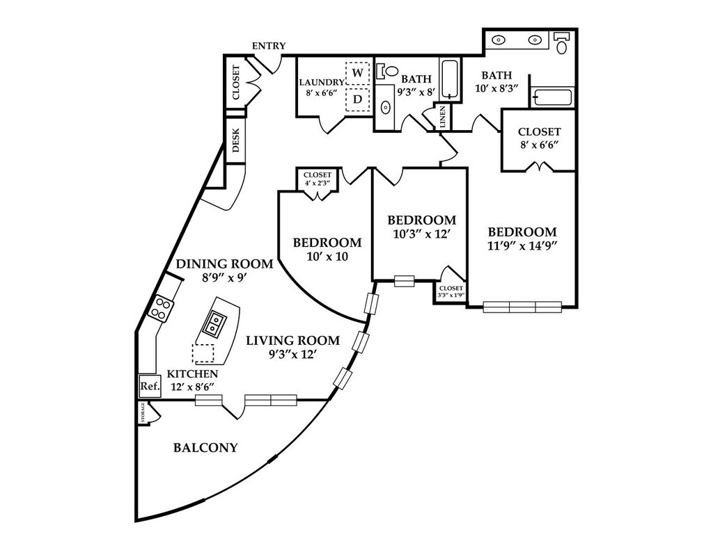 Modelo de apartamento: A3Desde $1,3791 Dormitorio, 1 Baño, 810 sq ftDisponible February 3, 2026![]()