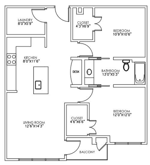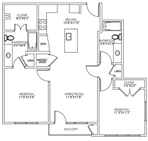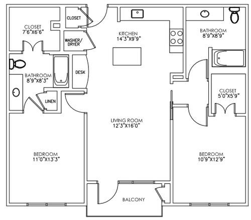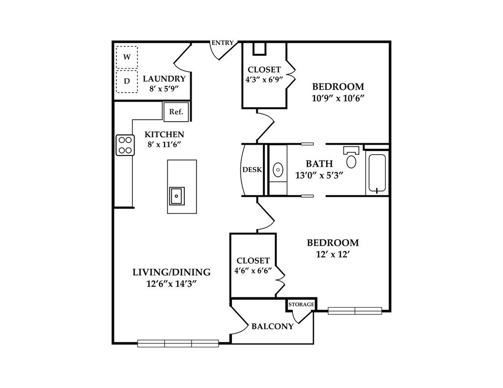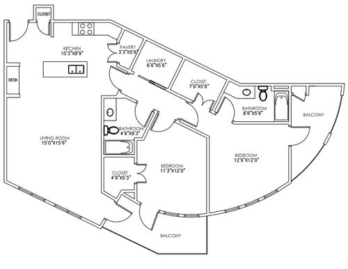 Modelo de apartamento: A2Desde $1,1941 Dormitorio, 1 Baño, 665 sq ftDisponible Ahora![]()