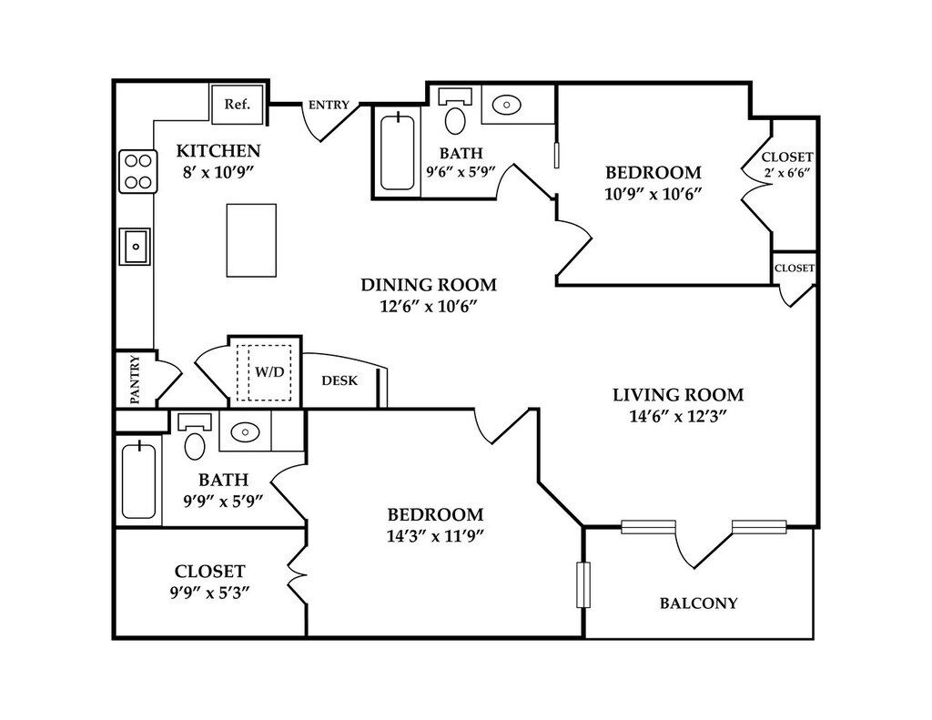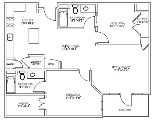 1 Dormitorio, 1 Baño, 810 pies²Disponible February 3, 2026El más grandeEsta opción tiene las unidades más grandes para este modeloGalería del Modelo