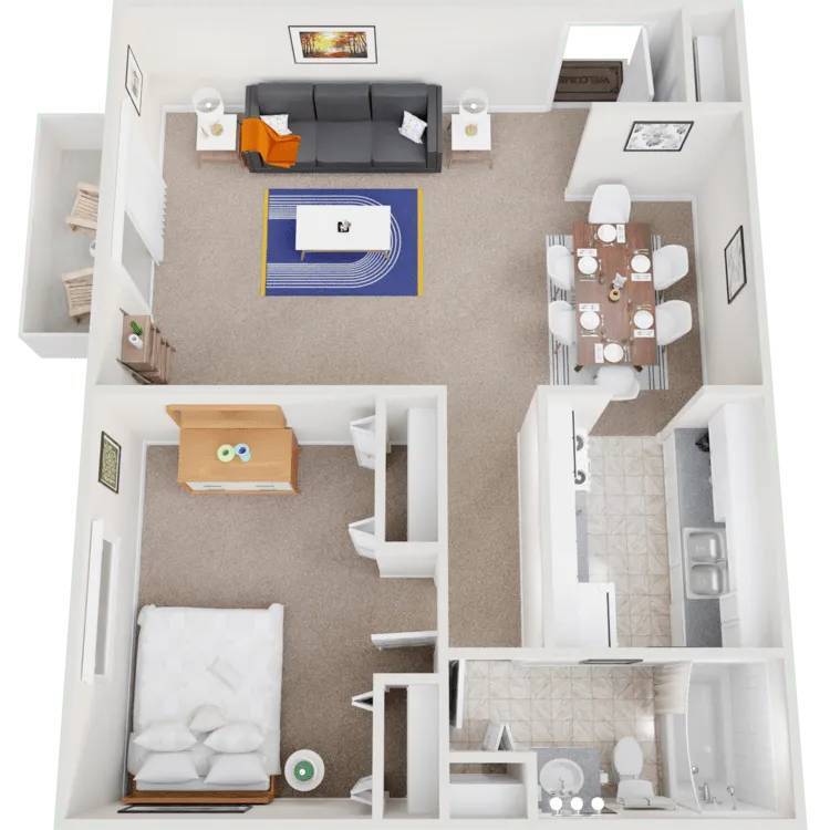 1 Dormitorio, 1 Baño, 701-1145 pies²Disponible AhoraGalería del Modelo