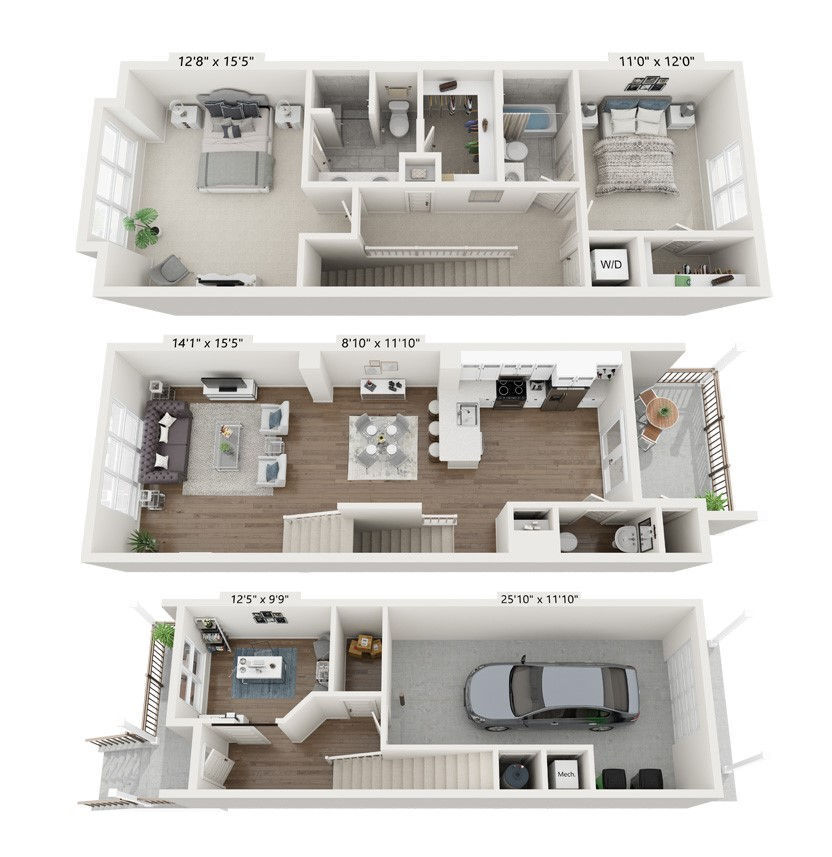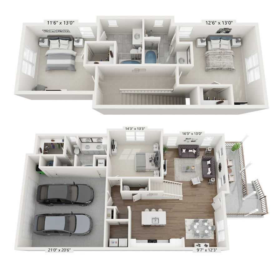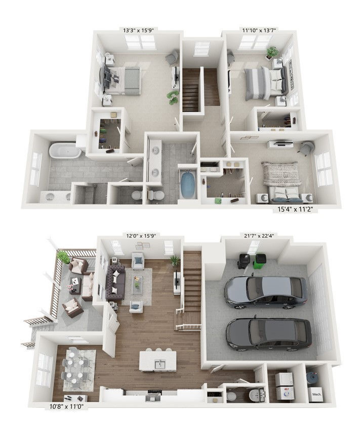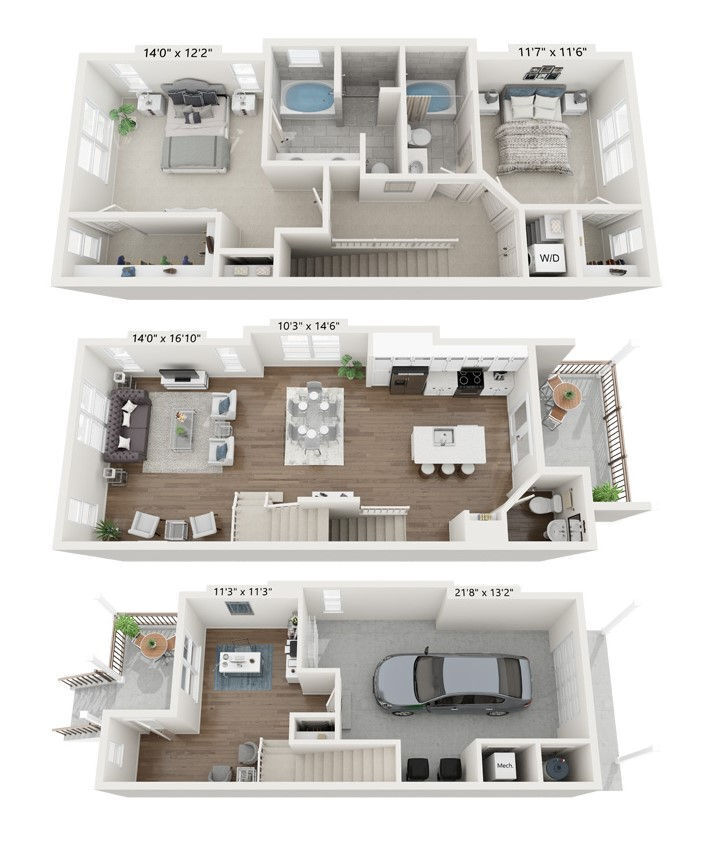 2 Dormitorios, 2.5 Baños, 2106 pies²Disponible AhoraGalería del Modelo