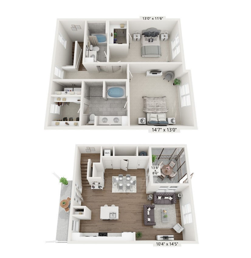 Modelo de apartamento: B2.S RedwoodDesde $2,8622 Dormitorios, 2.5 Baños, 2106 sq ftDisponible Ahora![]()