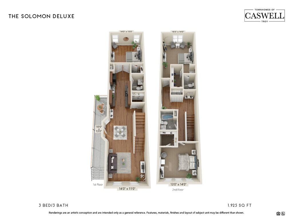Modelo de apartamento: The Solomon Deluxe$2,7503 Dormitorios, 3 Baños, 1925 sq ftNo DisponibleThe Solomon Deluxe - Plano 1