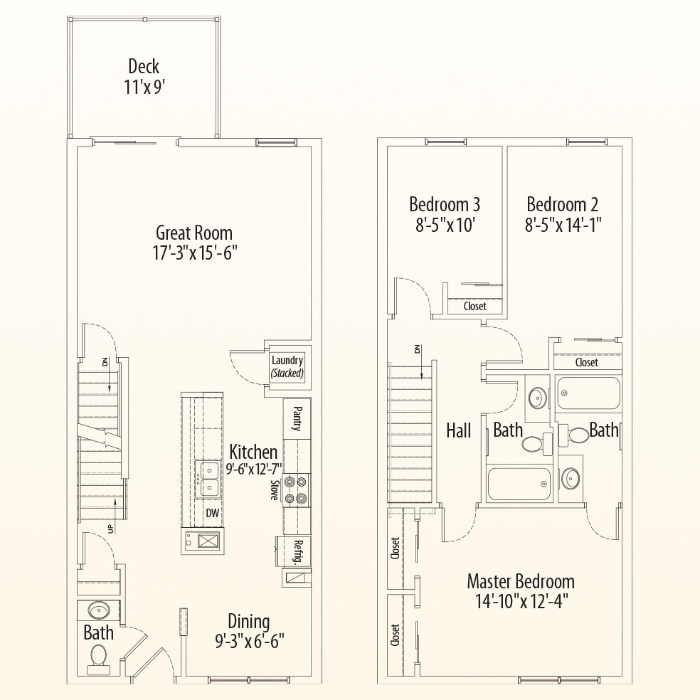 Llámenos hoy para conocer las opciones de precio de 2 dormitorios a 3 dormitorios en Towns at Woodridge