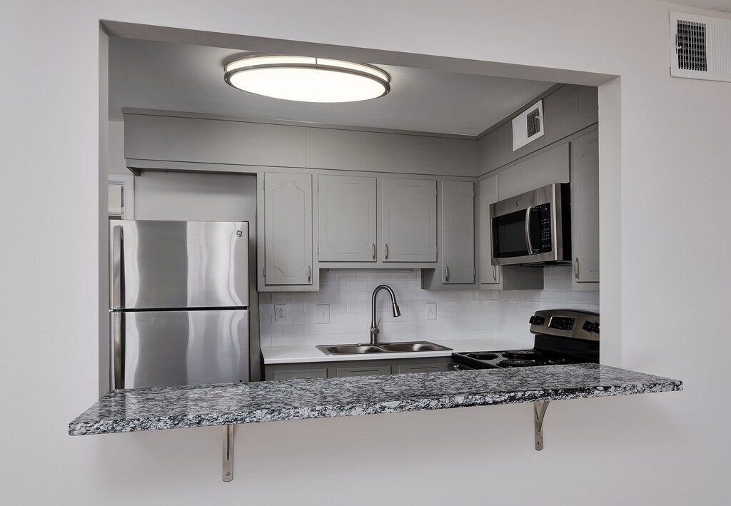 ¡Apartamentos recientemente renovados que incluyen electrodomésticos nuevos, encimeras de granito, lavadora / secadora apilables y balcón privado con una vista fantástica de la ciudad!