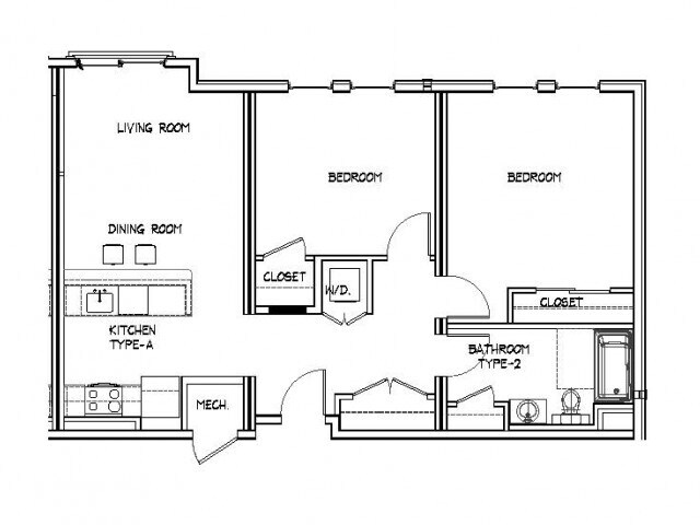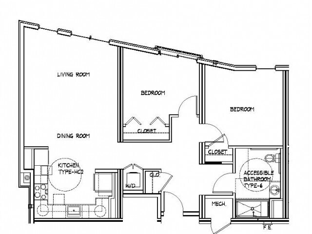 2 Dormitorios, 1 Baño, 960 pies²Precio Mensual TotalDisponible Dec 21Galería del Modelo