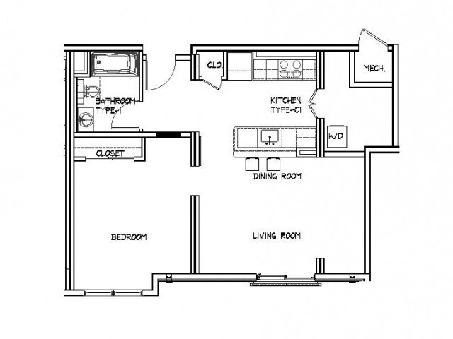 1 Dormitorio, 1 Baño, 693 pies²El más grandeEsta opción tiene las unidades más grandes para este modeloGalería del Modelo