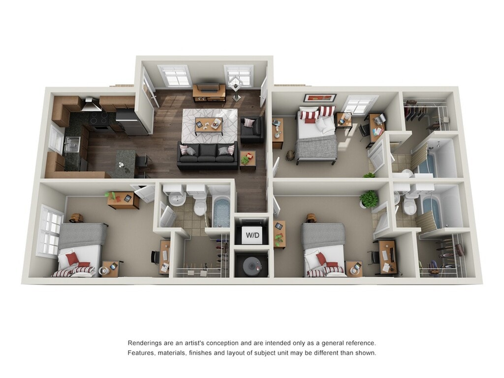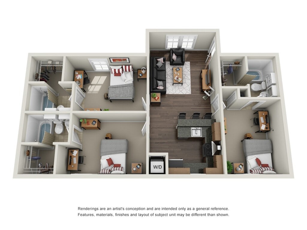 February 24, 2025In general for student living it is not bad; however, there are plenty of problems. To start, I have lived here for the last two years and neither year has my duplex's heat worked. There is a specific way you have to change between AC and heat, but even after doing it correctly it simply doesn't work for more than a few hours at a time. We've had maintenance here more times than we can count and they still can't fix it. Usually by the time they can find a way to fix it, the weather is back to ...being warm. Next, the upkeep of some amenities is less than ideal. My friends and I love playing pickup basketball, but the backboards of both hoops are cracked and the rims are tilted and loose. The coffee machine works maybe 1/3 of the time if you go before the office opens (10AM) or after it closes (6PM). If you go while it is open its more of a 2/3 chance of it working and usually if you ask them to fix it they can help. Much of the equipment in the gym, mainly machines and treadmills, are broken or not working in some way. Also, we have had some bug problems. My roommate who live on the first floor has cockroaches crawling out of holes in his bathroom almost every day. We also have had a few and infestations that spread everywhere in the house. Lastly, I wanted to add that a number of residents do not know how to act. Walking around, you will often catch whiffs of weed from people smoking on their balconies, and if you walk past you are likely to be catcalled, yelled at, or made fun of in some way.Leer MásReseña de Apartments.com