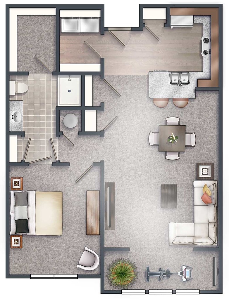 1 Dormitorio, 1 Baño, 911 pies²Disponible Nov 21Galería del Modelo