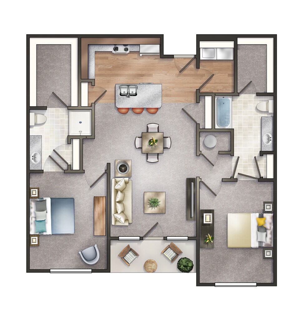 Modelo de apartamento: 2 Bedroom Craftsman PremierDesde $1,5492 Dormitorios, 2 Baños, 1172 sq ftDisponible Ahora![]()