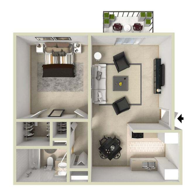 1 Dormitorio, 1 Baño, 731 pies²Disponible AhoraEl más grandeEsta opción tiene las unidades más grandes para este modeloGalería del Modelo