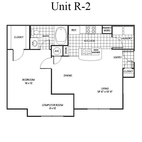 Modelo de apartamento: 1B - Rodhos- Computer RoomDesde $9601 Dormitorio, 1 Baño, 748 sq ftDisponible Ahora![]()