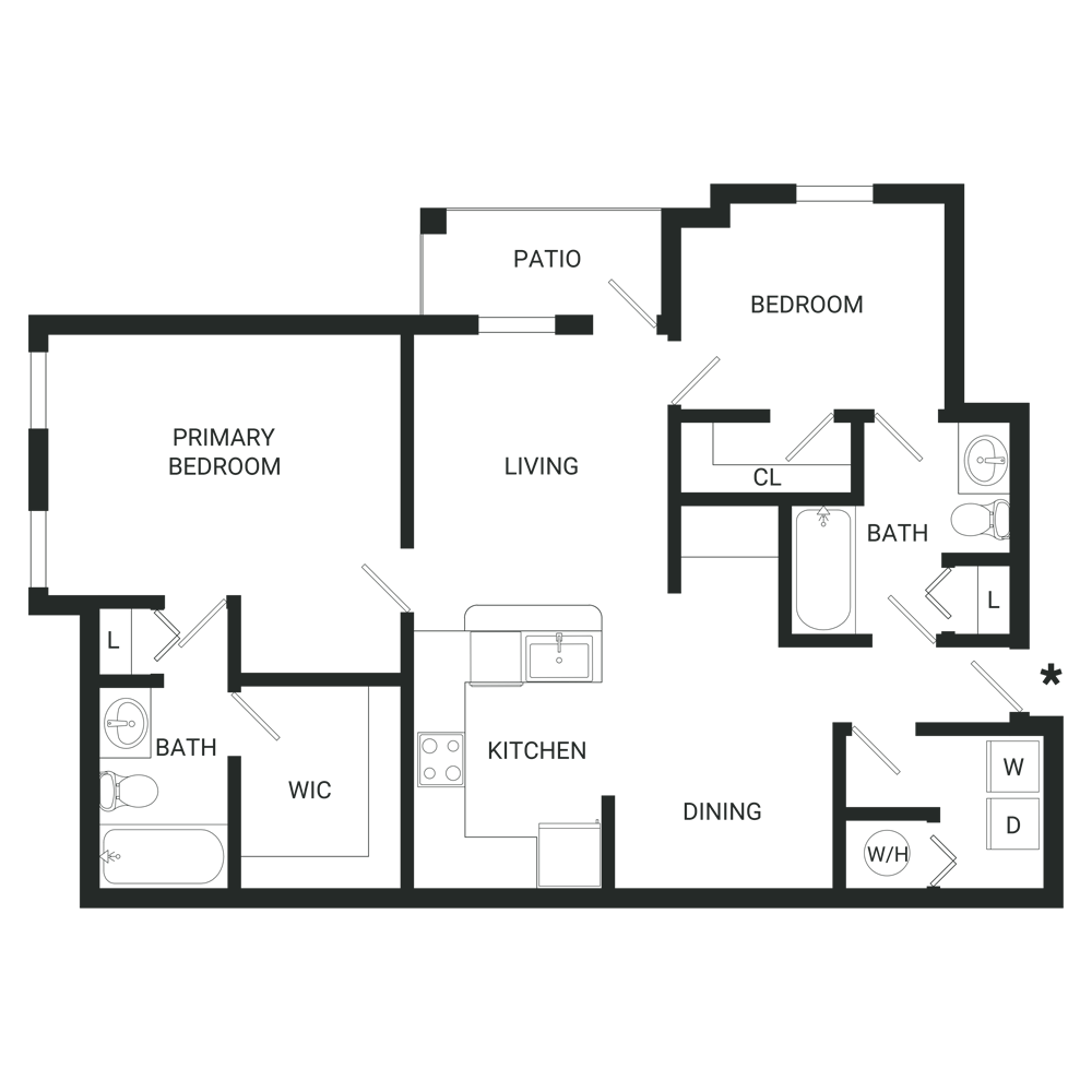 Modelo de apartamento: SydneyDesde $1,3542 Dormitorios, 2 Baños, 1188 sq ftDisponible AhoraLos planos son representaciones artísticas. Todas las dimensiones son aproximadas. El producto y las especificaciones reales pueden variar en tamaño o detalle. No todas las características están disponibles en cada vivienda en alquiler. Por favor, consulta con un representante para obtener más detalles.
