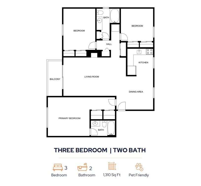 Modelo de apartamento: 3 Bed - 2 BathDesde $1,7143 Dormitorios, 2 Baños, 1310 sq ftDisponible Ahora![]()