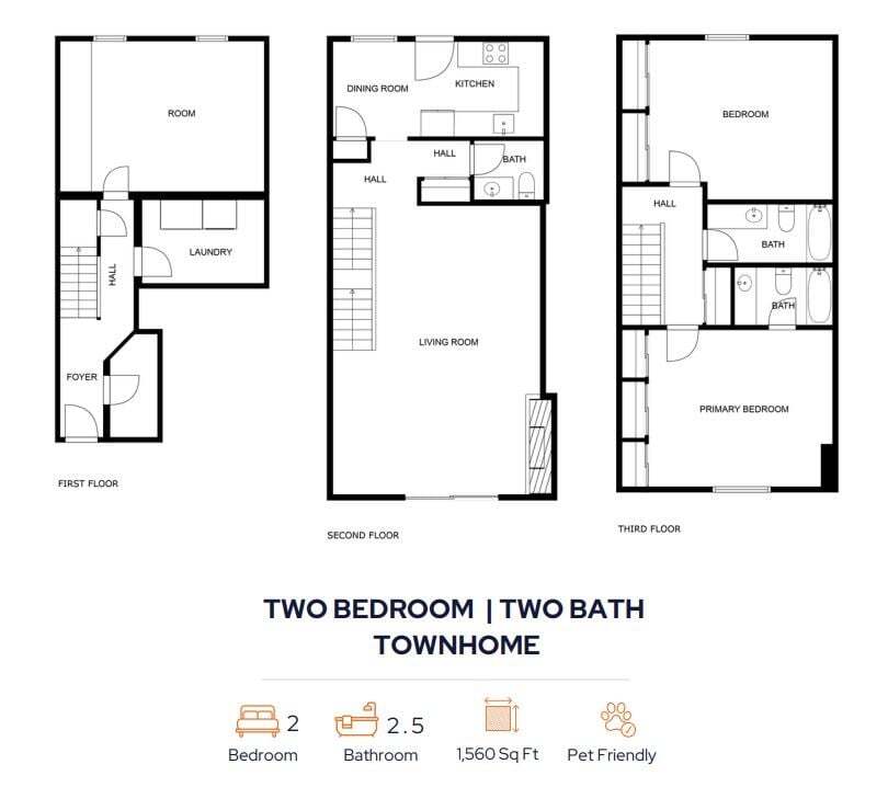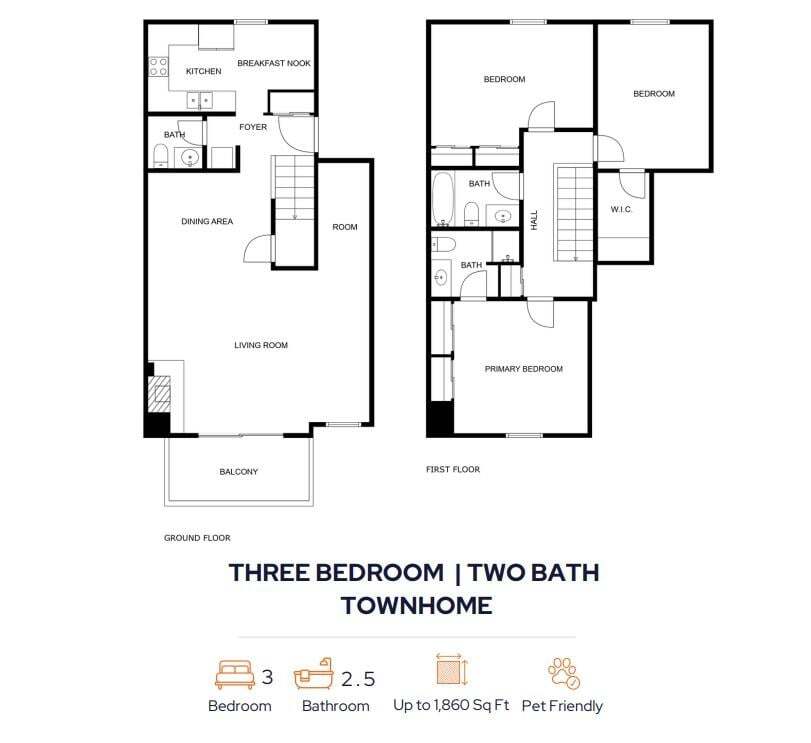 Modelo de apartamento: 2 Bed - 2.5 Bath TownhomeDesde $1,9252 Dormitorios, 2.5 Baños, 1560 sq ftNo Disponible![]()