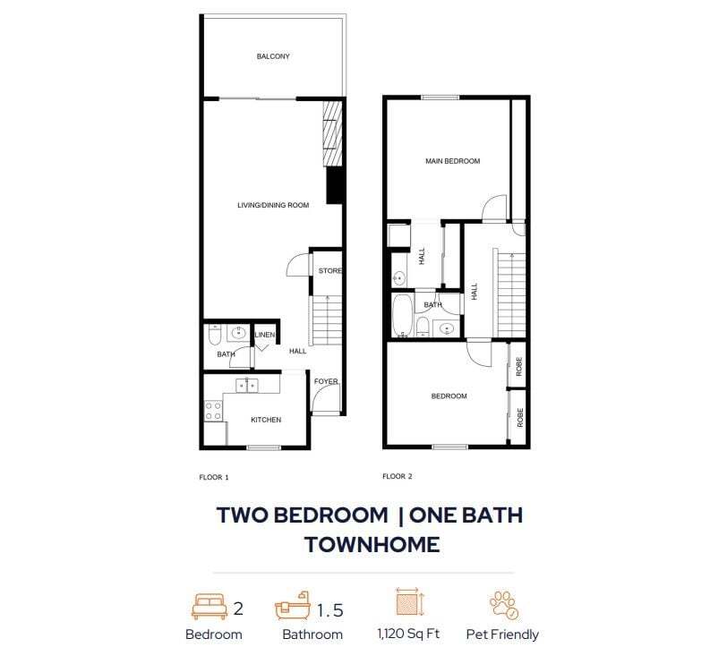 2 Bed - 1.5 Bath Townhome - Plano 1 2 Bed - 2.5 Bath Townhome