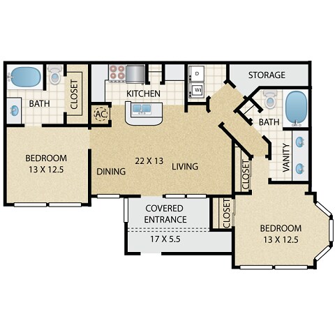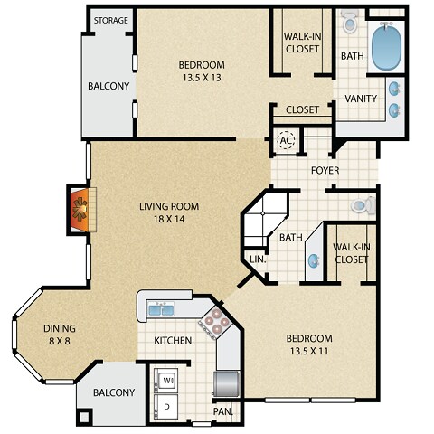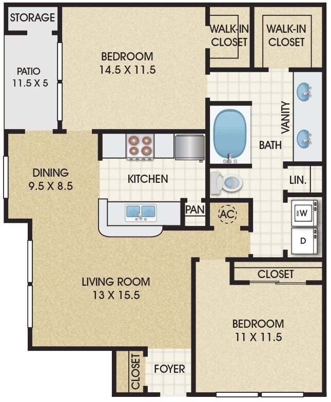 1 Dormitorio, 1 Baño, 727 pies²Disponible AhoraGalería del Modelo