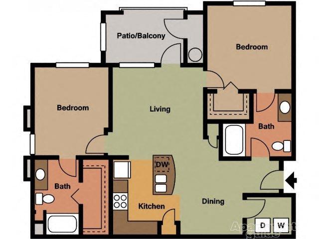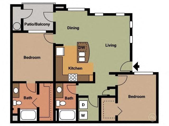 Modelo de apartamento: Fresian Two Bedroom Two BathroomDesde $1,6992 Dormitorios, 2 Baños, 1053 sq ftDisponible Ahora![]()
