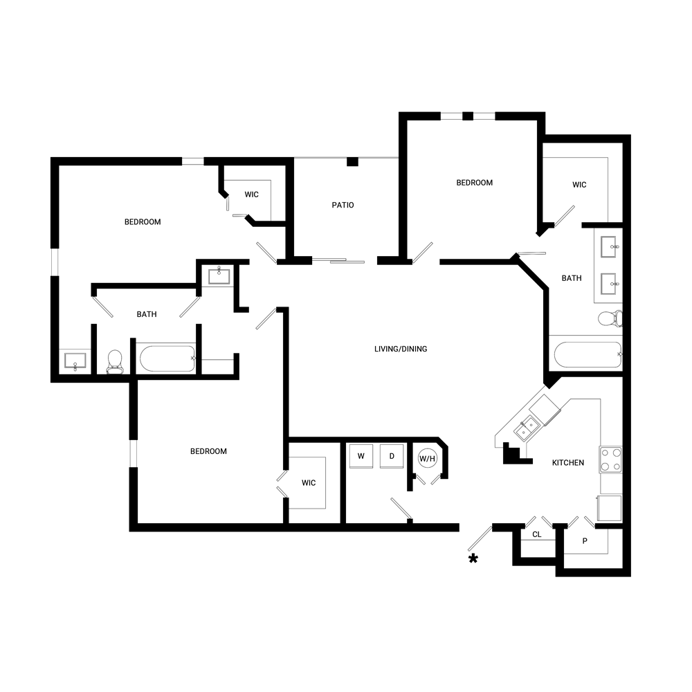 Modelo de apartamento: A1Desde $1,8031 Dormitorio, 1 Baño, 782 sq ftDisponible Ahora![]()