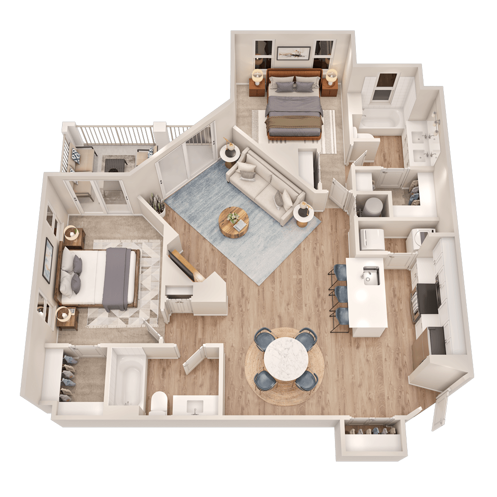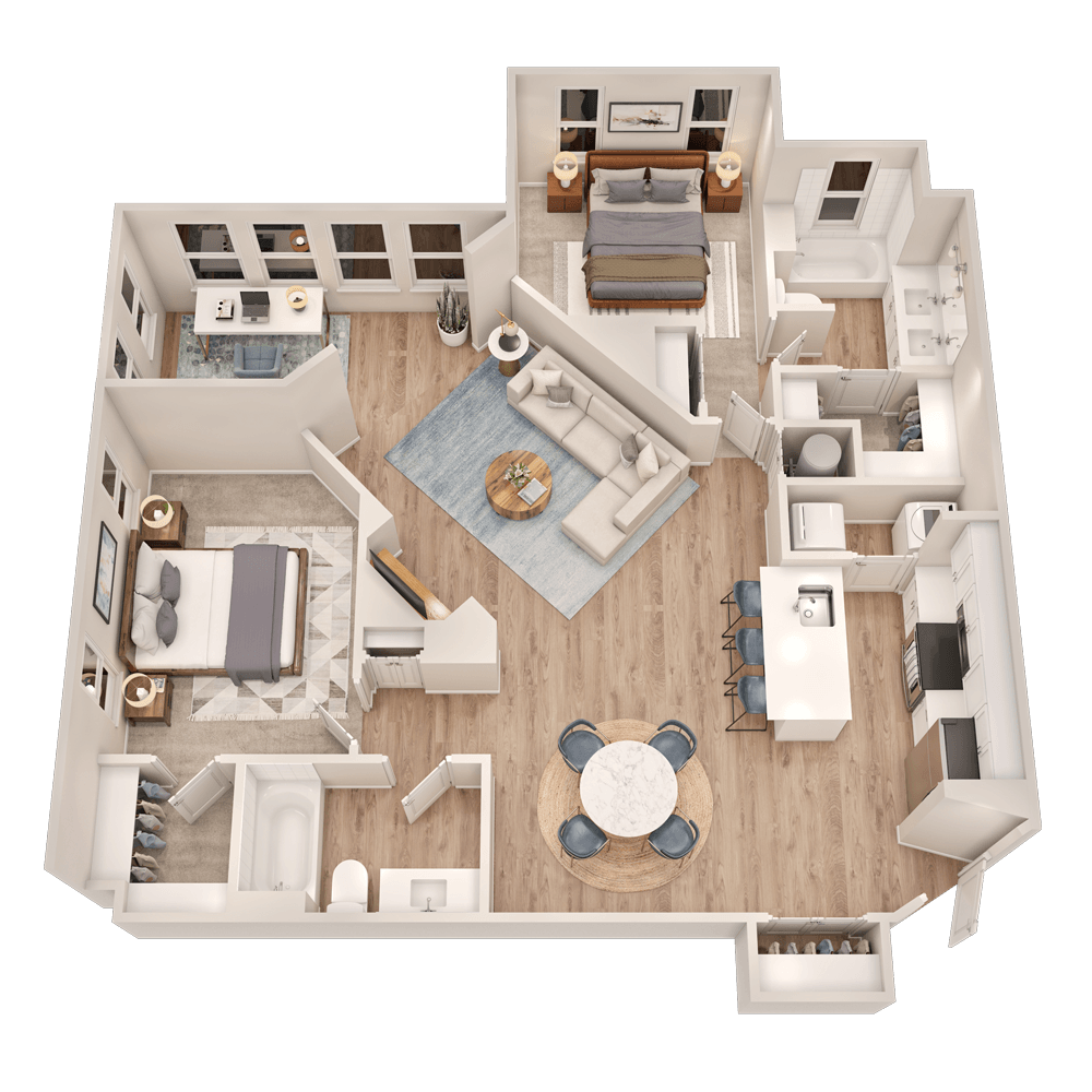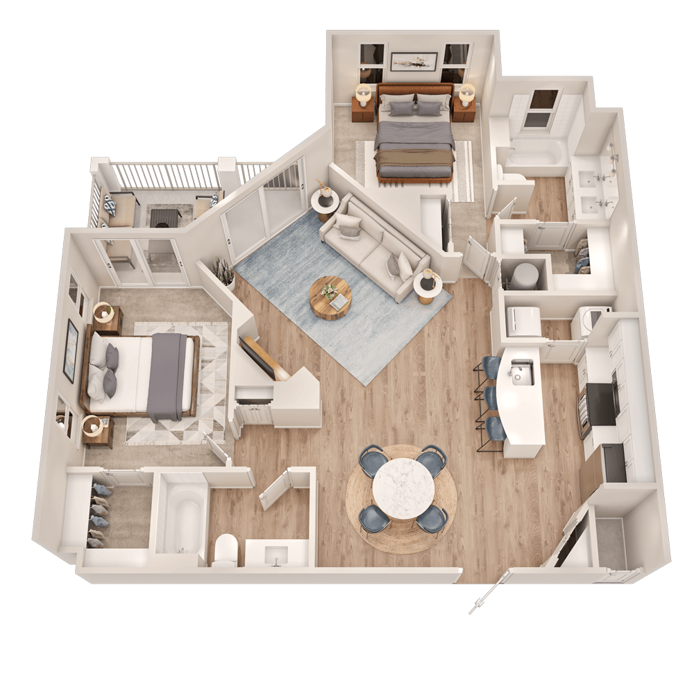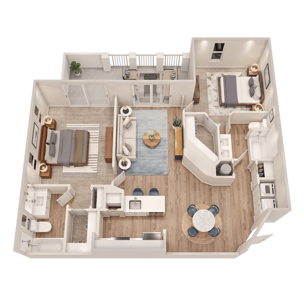 Modelo de apartamento: B1Desde $1,6742 Dormitorios, 2 Baños, 1044 sq ftDisponible Ahora![]()