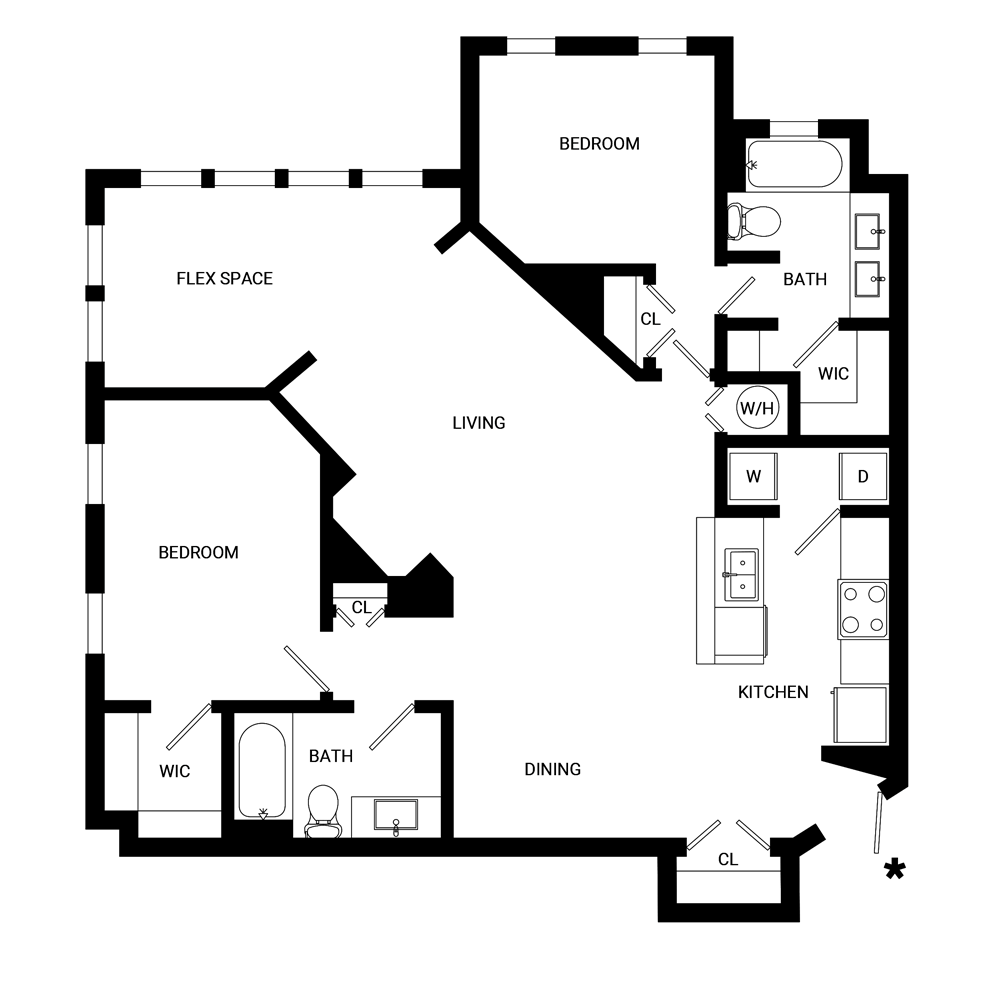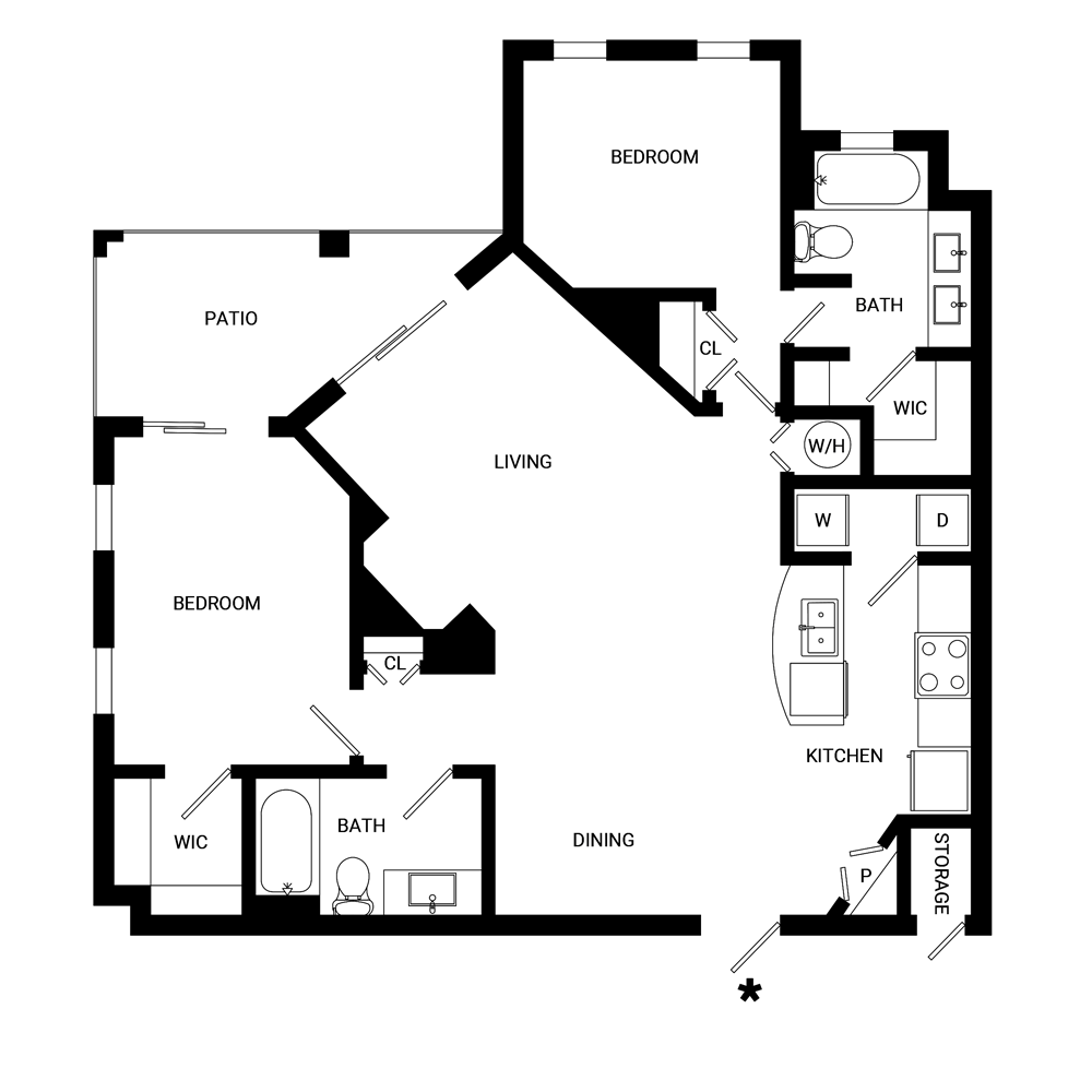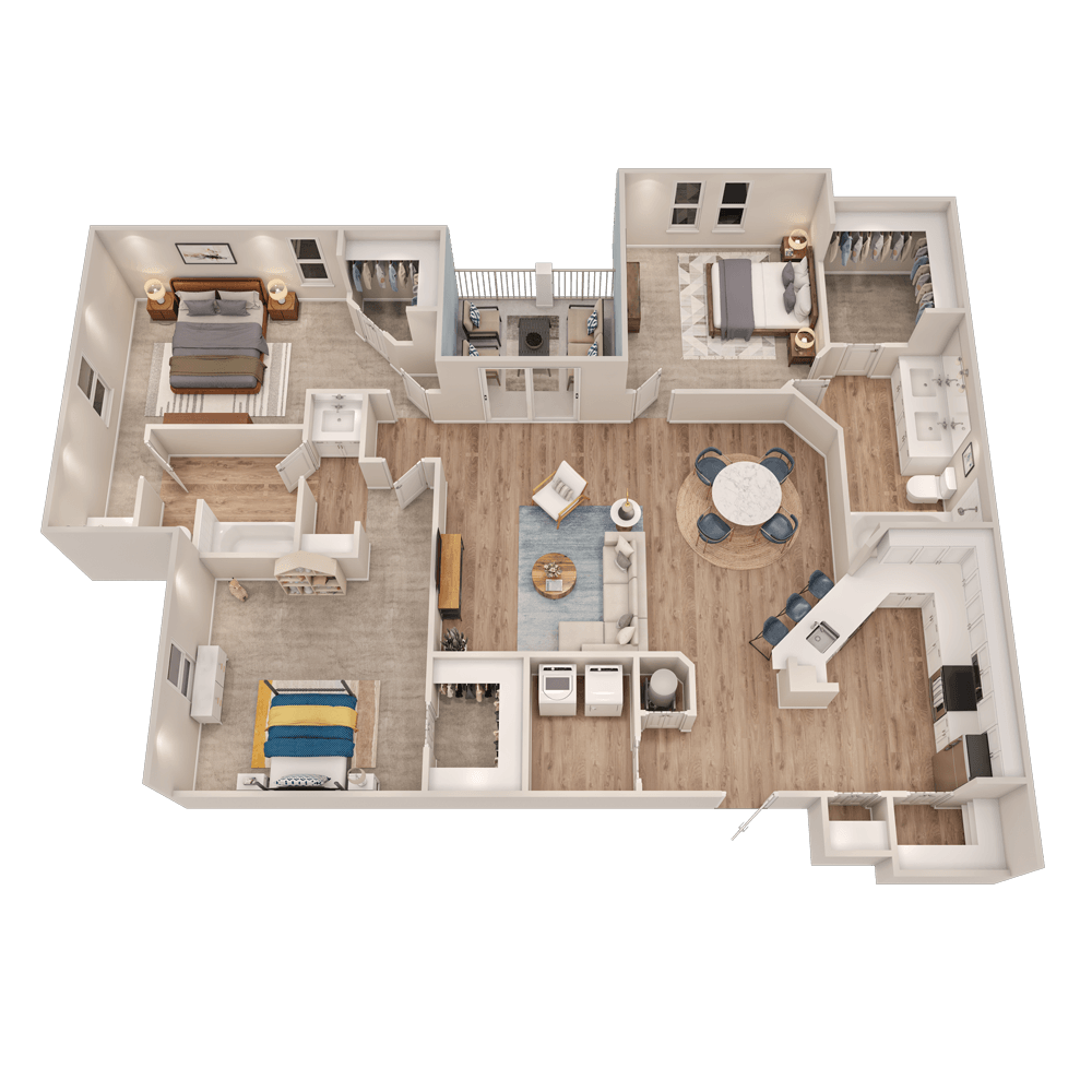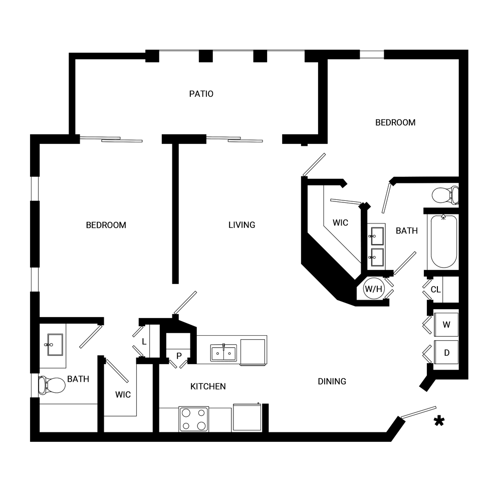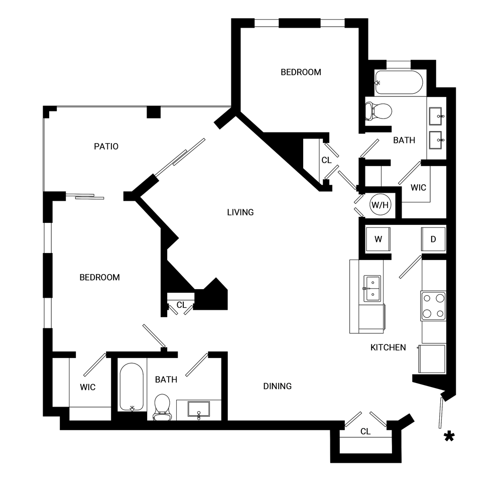 Modelo de apartamento: B1Desde $1,6742 Dormitorios, 2 Baños, 1044 sq ftDisponible Ahora![]()