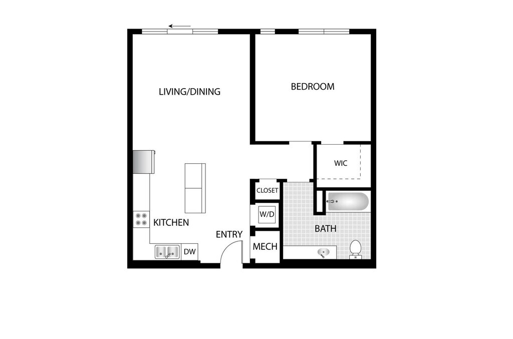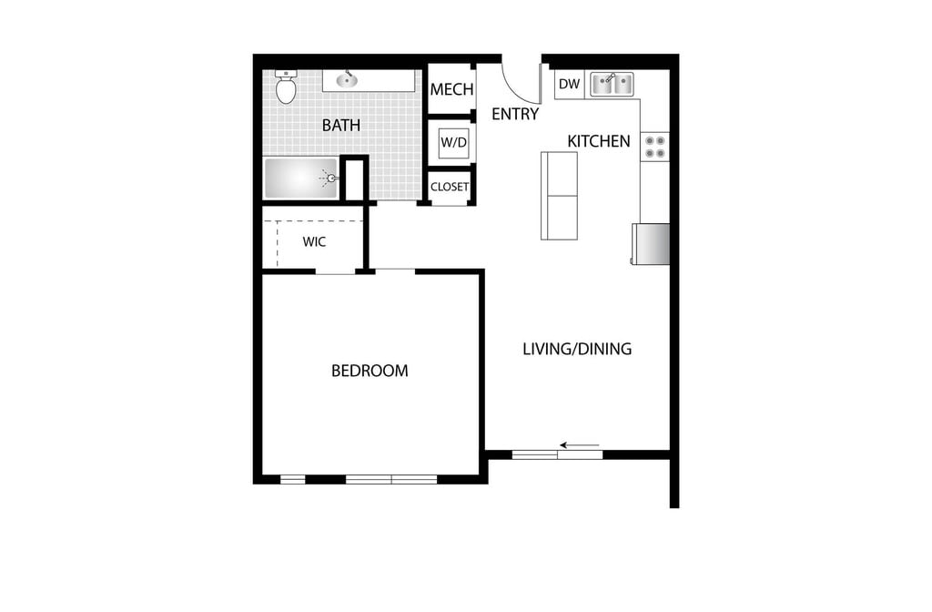Estudio, 1 Baño, 485 pies²Disponible January 9, 2026El más grandeEsta opción tiene las unidades más grandes para este modeloGalería del Modelo