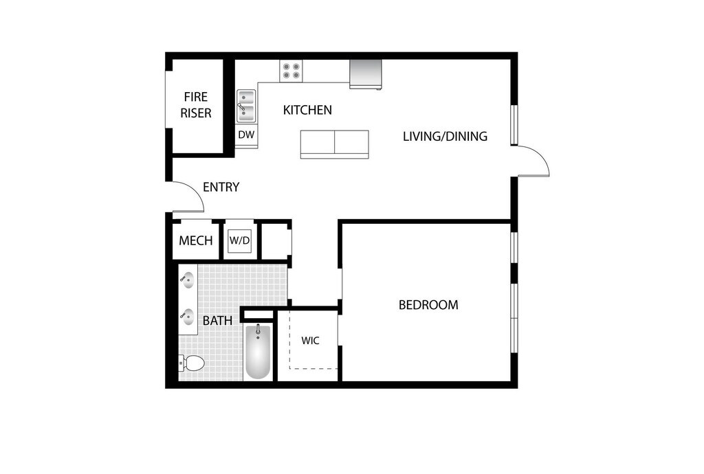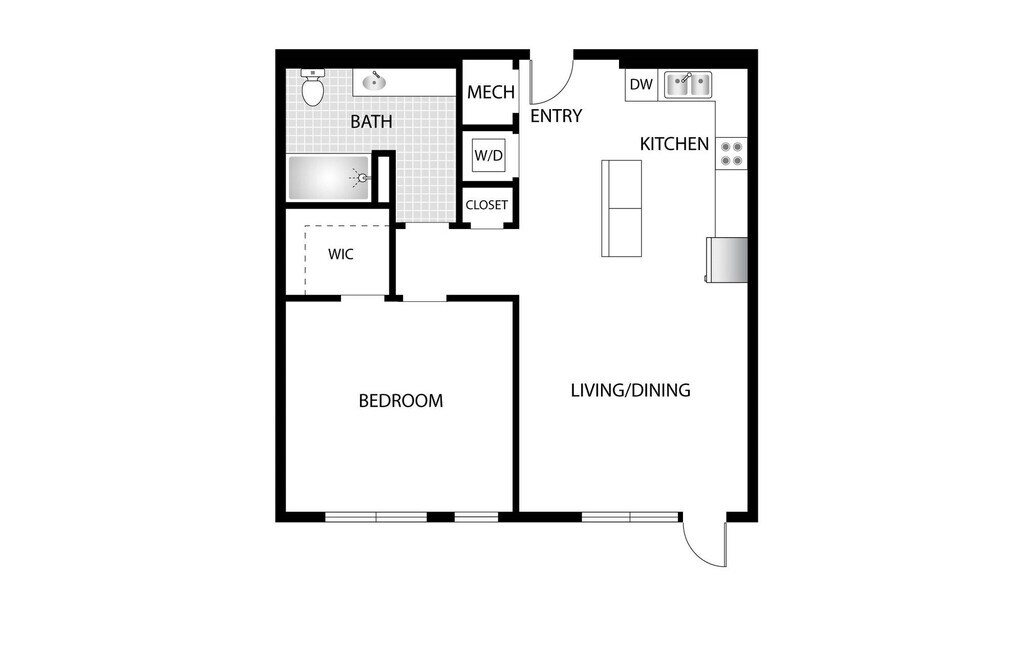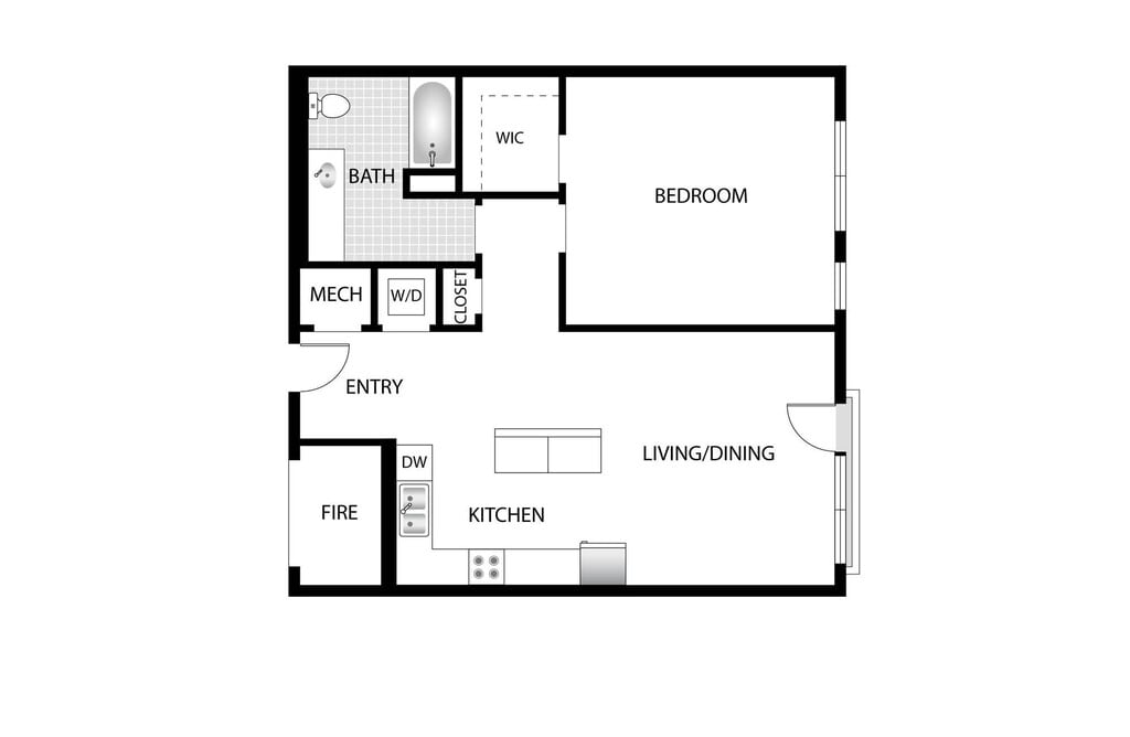 Estudio, 1 Baño, 450 pies²Disponible AhoraGalería del Modelo