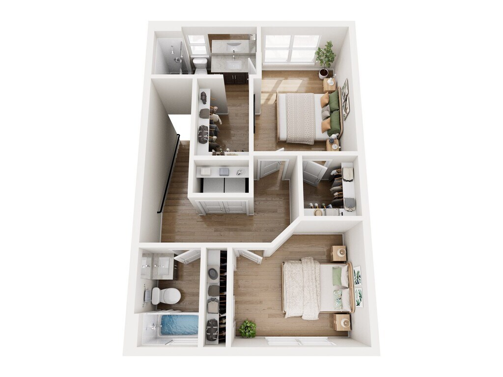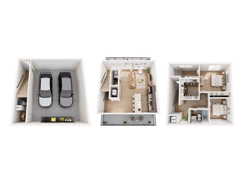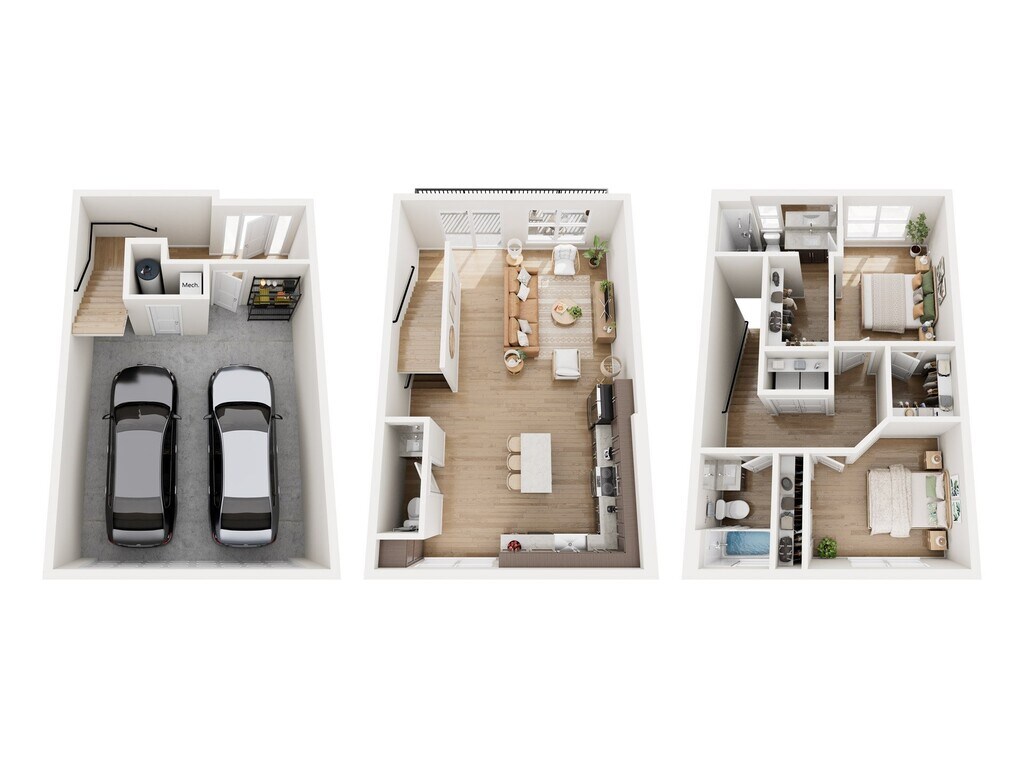 2 Dormitorios, 2.5 Baños, 1298 pies²Disponible May 1, 2026Galería del Modelo