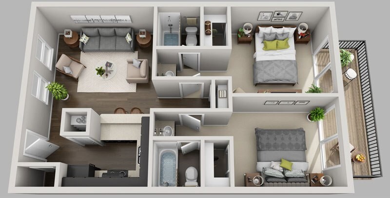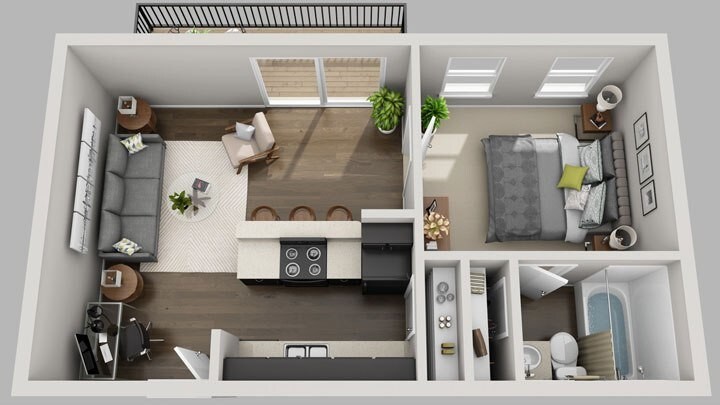 1 Dormitorio, 1 Baño, 544 pies²Disponible AhoraGalería del Modelo