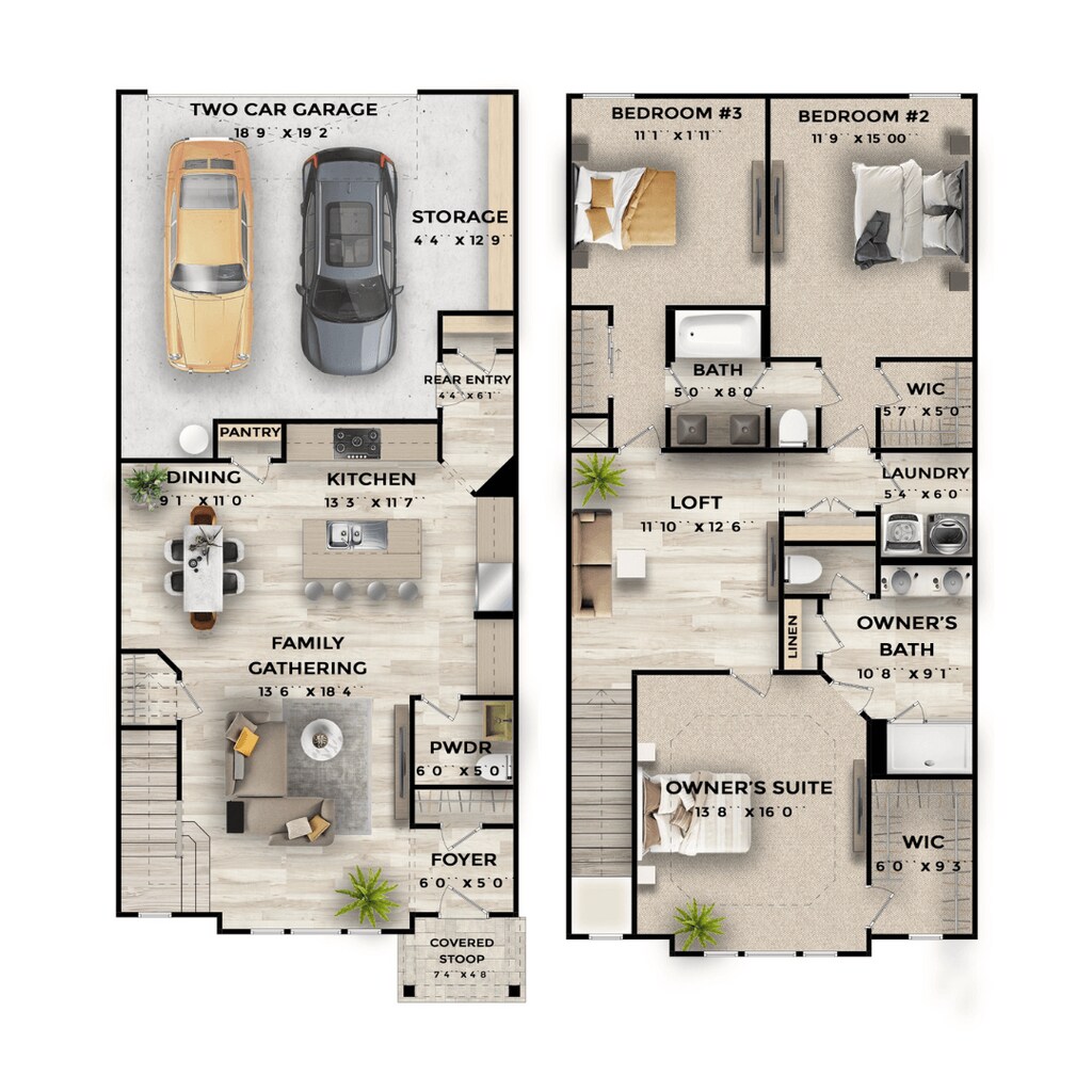 Lancaster TH - Plano 3 Los planos de la planta son una interpretación artística. Todas las dimensiones son aproximadas. Los tamaños o el detalle del producto real y sus especificaciones pueden variar. No todas las características están disponibles en todos los hogares para rentar. Los precios y la disponibilidad están sujetos a cambios. El alquiler que se muestra es mensual. Se pueden aplicar ciertos cargos, por ejemplo, entrega de paquetes, recolección de basura, agua, servicios, etc. Depositos varian. Consulta a un representante para conocer detalles.