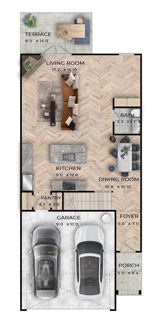 Lancaster TH - Plano 1 Los planos de la planta son una interpretación artística. Todas las dimensiones son aproximadas. Los tamaños o el detalle del producto real y sus especificaciones pueden variar. No todas las características están disponibles en todos los hogares para rentar. Los precios y la disponibilidad están sujetos a cambios. El alquiler que se muestra es mensual. Se pueden aplicar ciertos cargos, por ejemplo, entrega de paquetes, recolección de basura, agua, servicios, etc. Depositos varian. Consulta a un representante para conocer detalles.