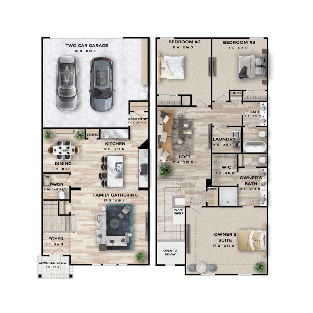 Lancaster TH - Plano 2 Los planos de la planta son una interpretación artística. Todas las dimensiones son aproximadas. Los tamaños o el detalle del producto real y sus especificaciones pueden variar. No todas las características están disponibles en todos los hogares para rentar. Los precios y la disponibilidad están sujetos a cambios. El alquiler que se muestra es mensual. Se pueden aplicar ciertos cargos, por ejemplo, entrega de paquetes, recolección de basura, agua, servicios, etc. Depositos varian. Consulta a un representante para conocer detalles.